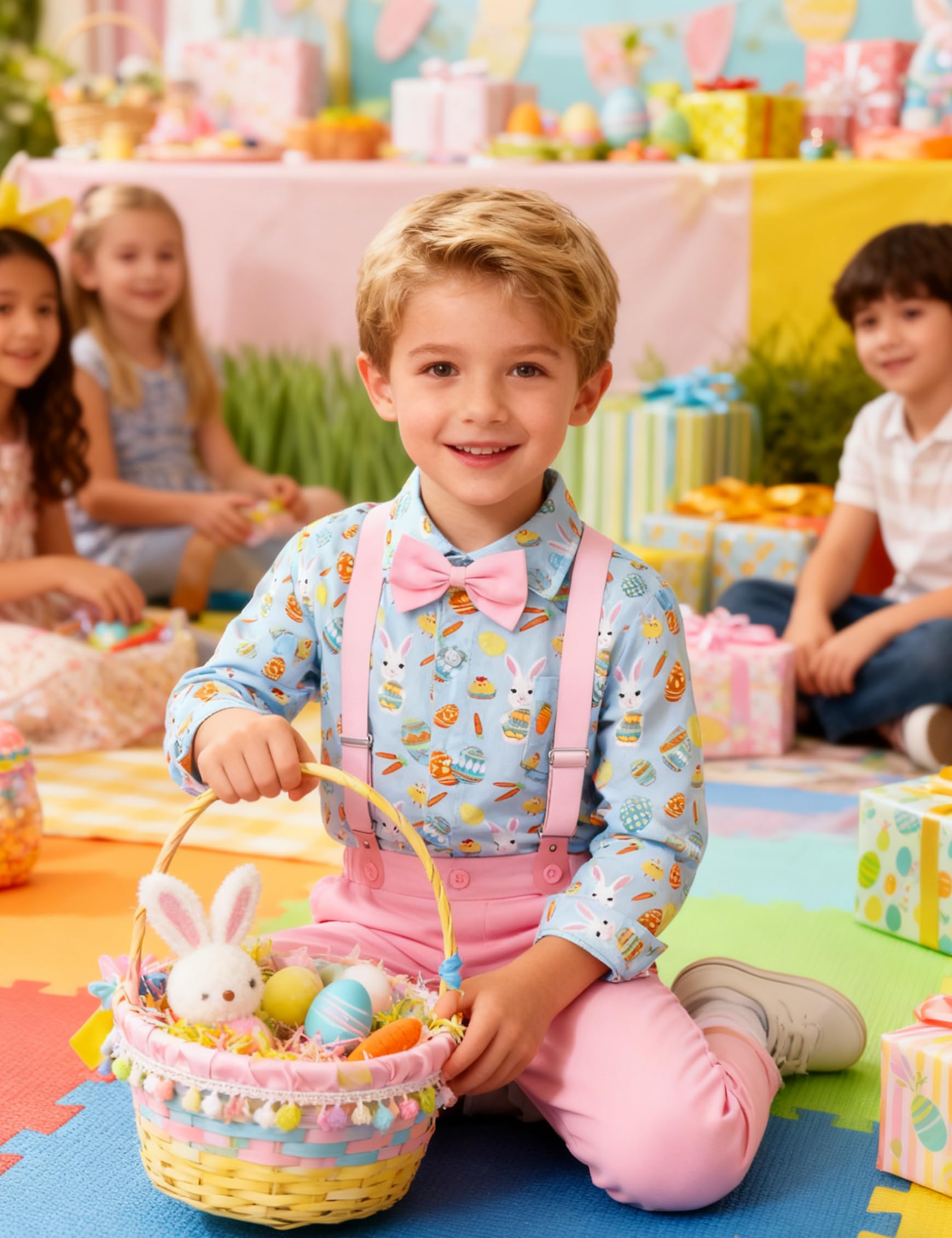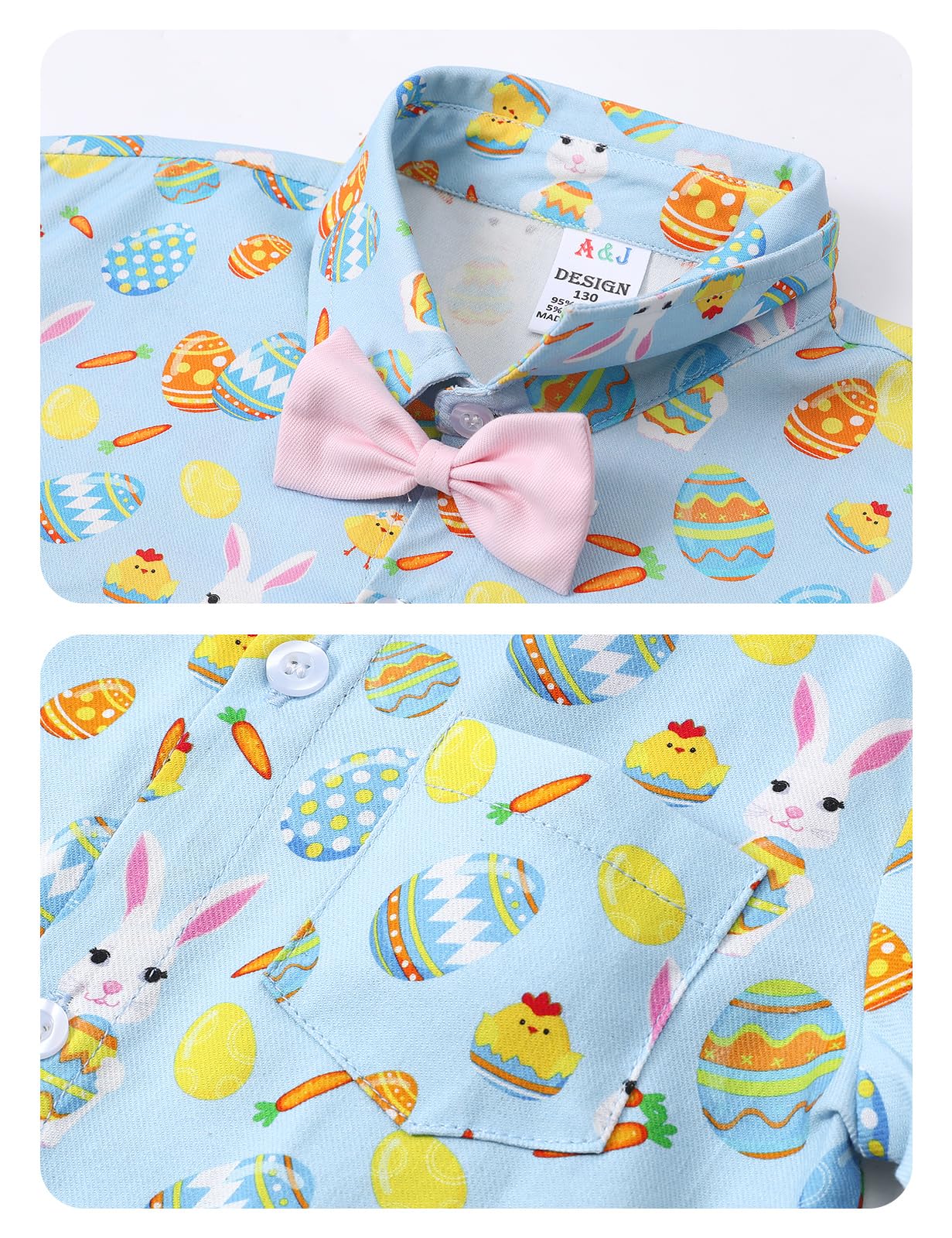 Toddler boy dress outfit consists of long sleeve dress shirt, elastic-waist pants, detachable bow tie and stretch suspender.It's designed specifically for baby boys which allows to attend various formal occasions.