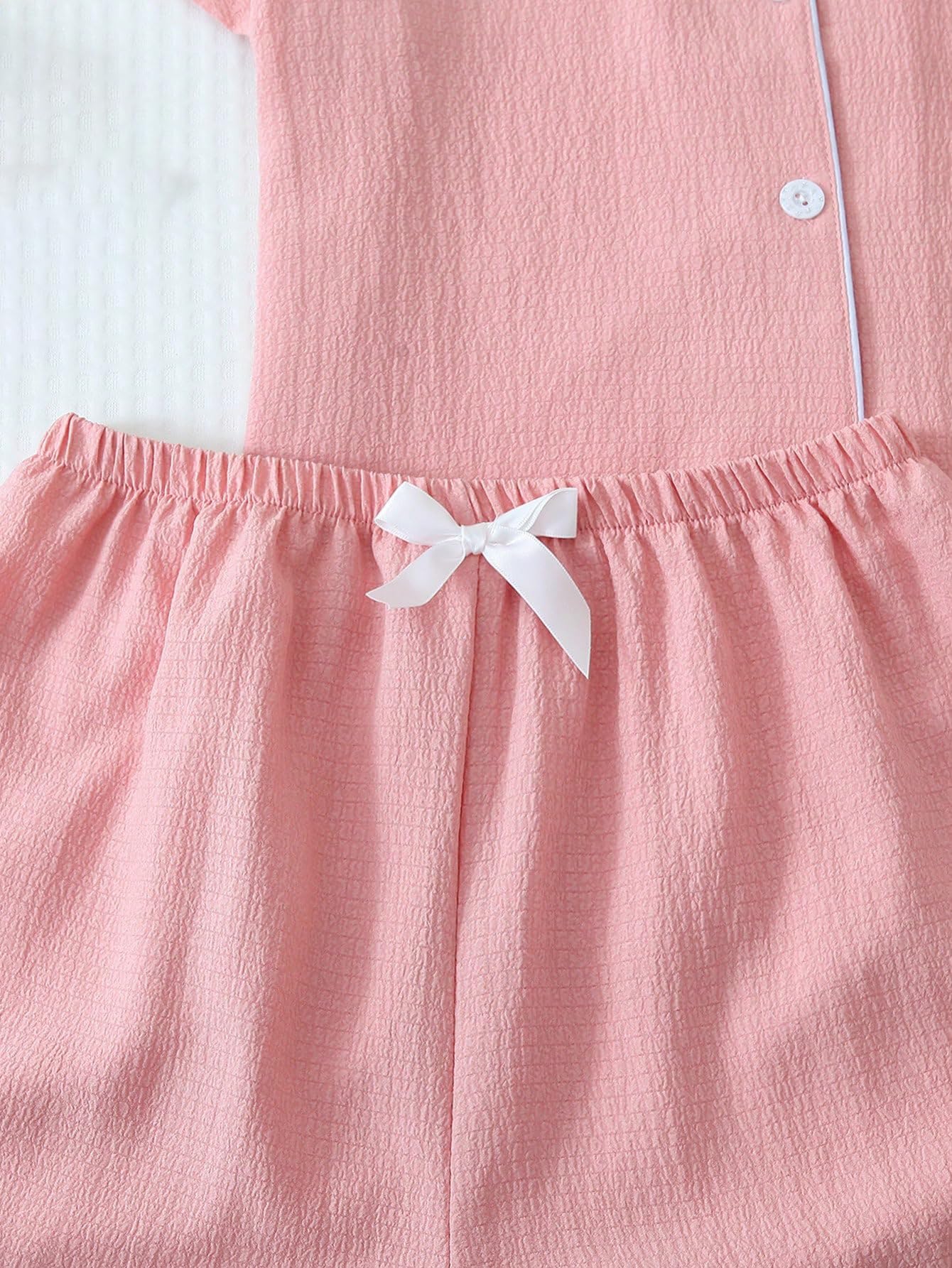 Lapel Collar, Short Sleeve, Print Pajamas, Bow Decoration, Button Down Top and Shorts, Loungewear Sets, Women's Sleepwear.
