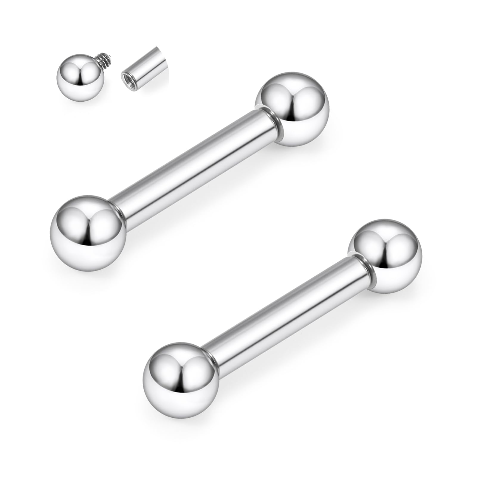[Style]: 1 pairs Titanium Internally Threaded Straight Barbells Nipple Tongue Rings Piercing Jewelry.