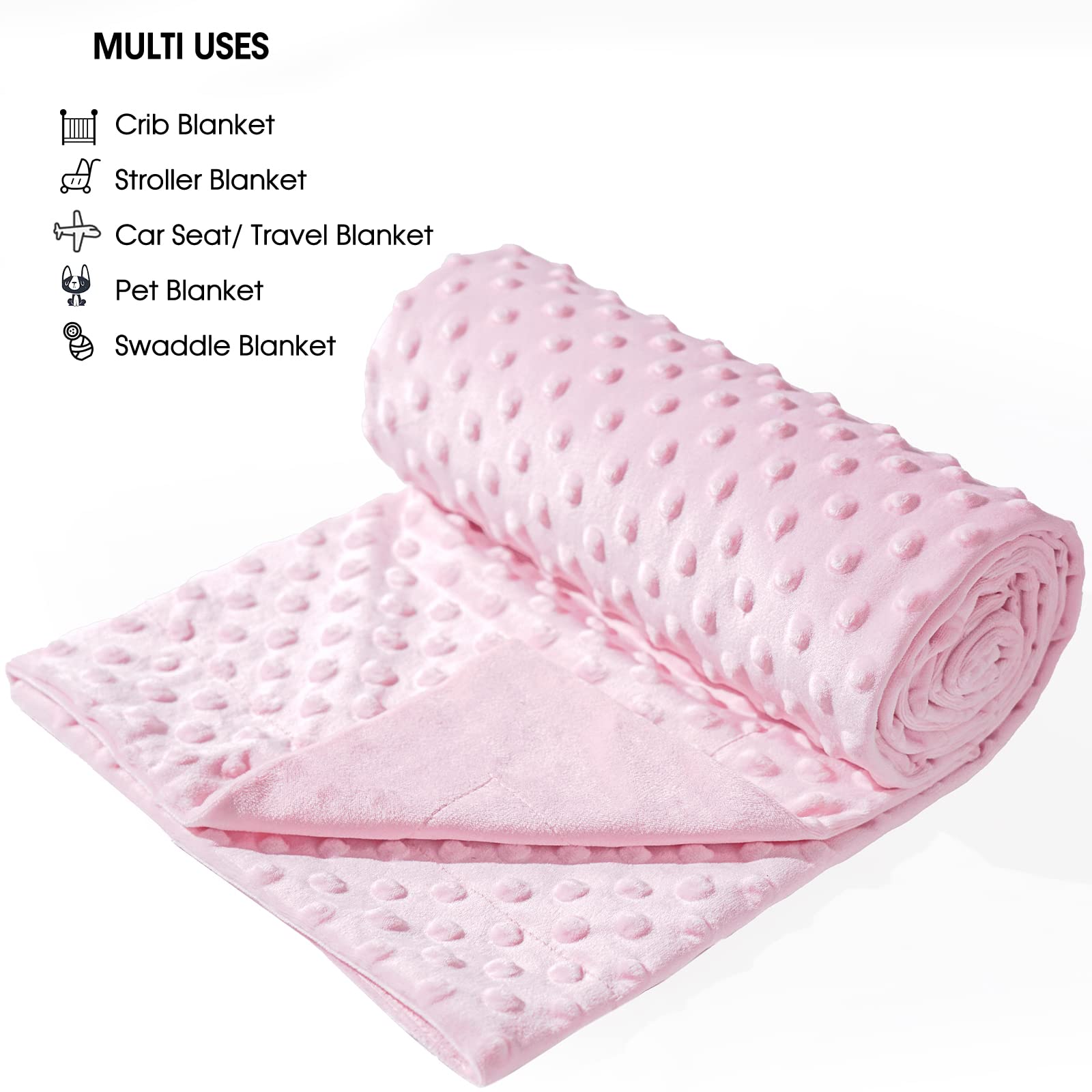 Luxury Texture: Our blankets are manufactured under strict conditions to ensure a safe and comfortable using experience for your baby. The soft minky fabric is gentle on delicate skin, while the raised plush dots on the front of the blanket will grab your baby's attention and keep them entertained. This combination creates a cozy and relaxing atmosphere that will help keep your child's mood happy and content.