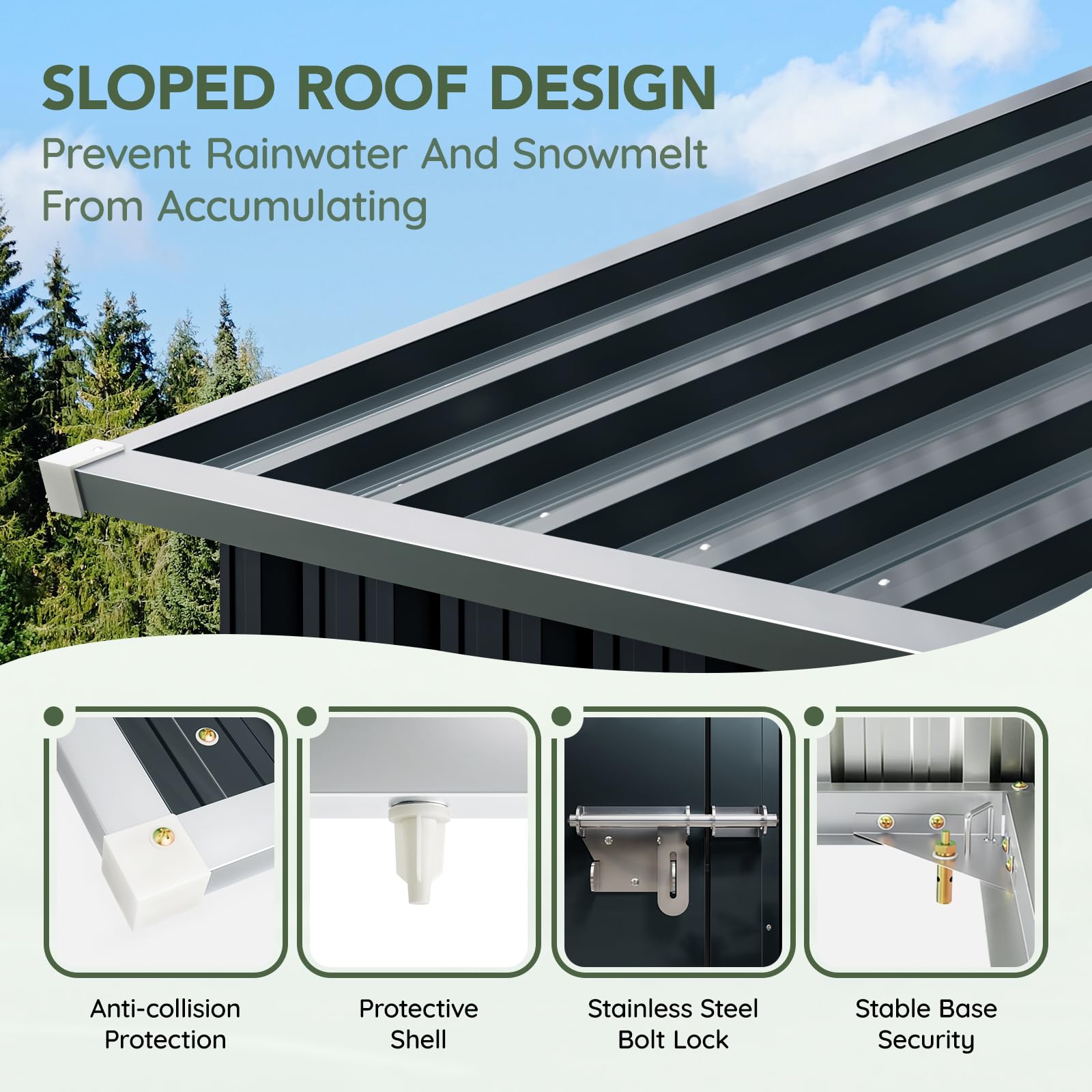 Heavy-Duty Galvanized Steel Panels – Weather-resistant material protects against rust, corrosion, and UV damage, ensuring long-term use.