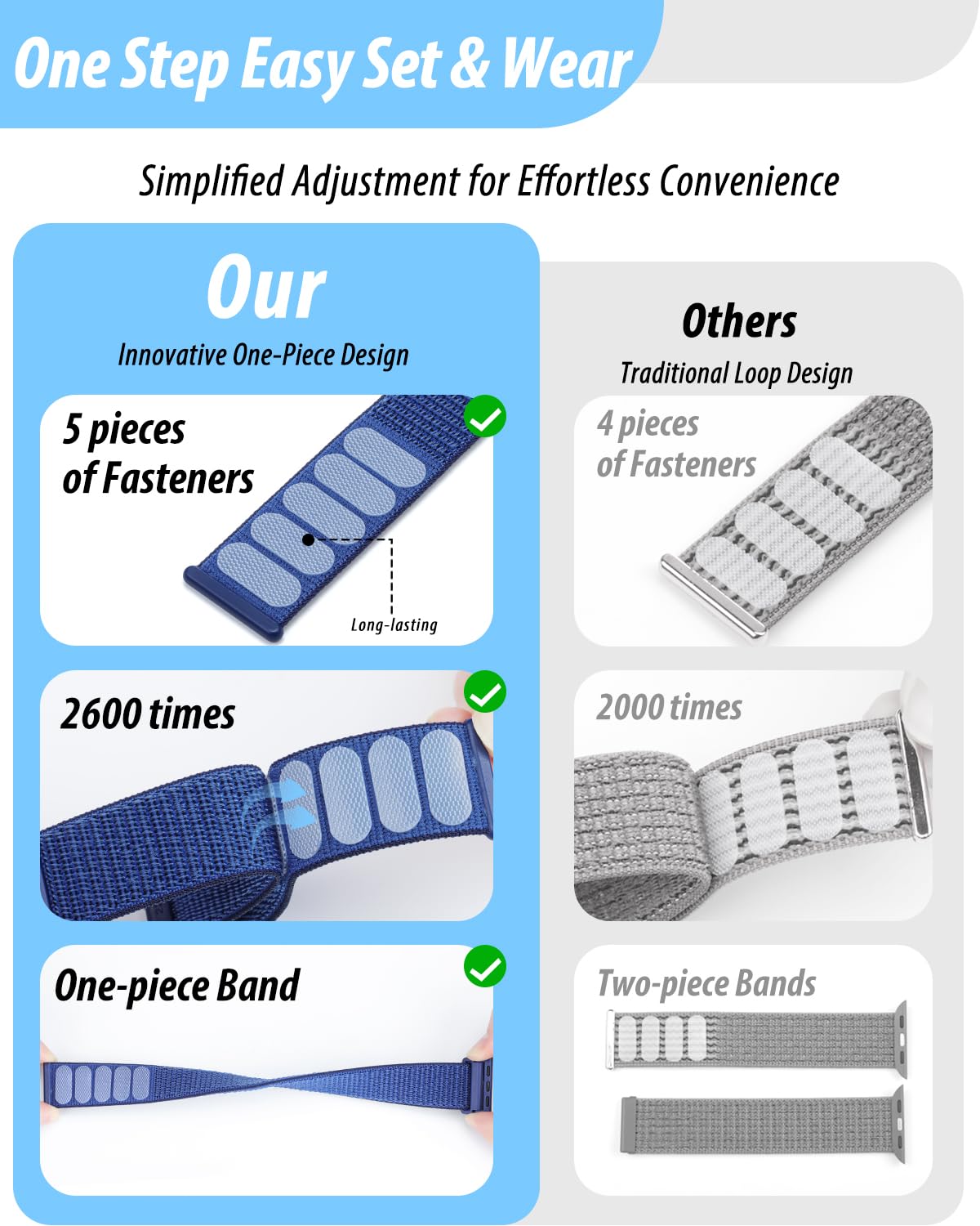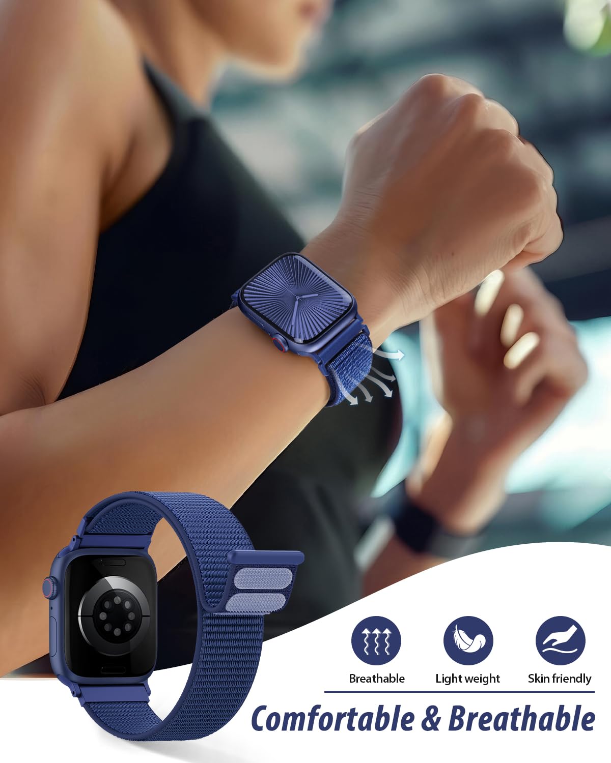 [Easy to Wear]: Our iWatch bands for women men feature a magic tape closure for easy, one-handed length adjustments, ensuring a snug fit during workouts and outdoor adventures. Durable, breathable, and comfortable, they keep your smartwatch securely in place no matter how active you get