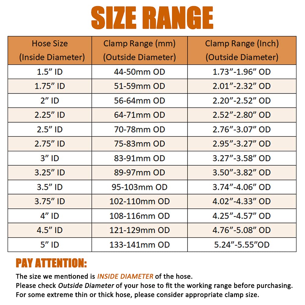 ATTENTION - Used for 5" ID hose, better to check your Hose OD to fit the working range before purchasing. For some extreme thin or thick hose, please consider appropriate clamp size.