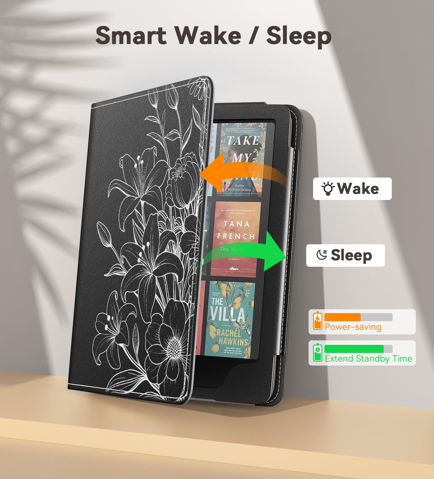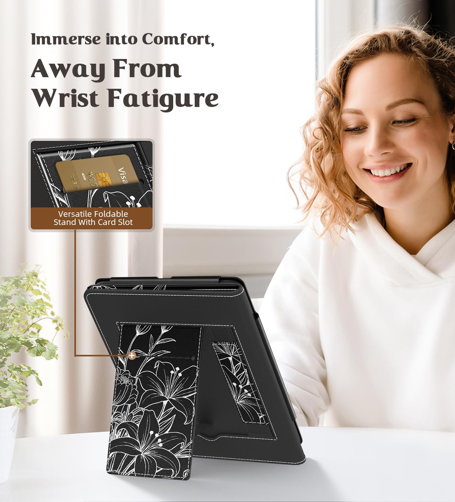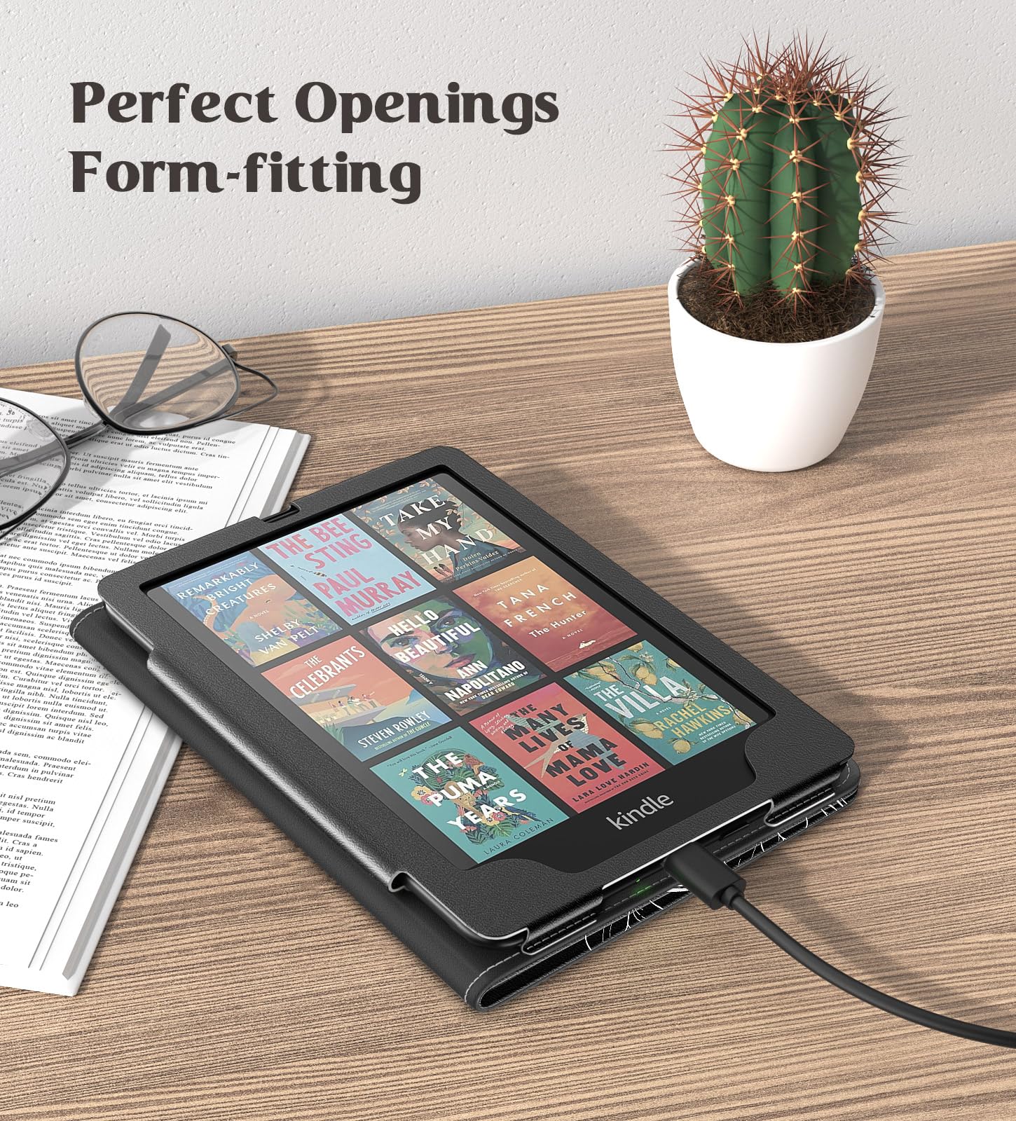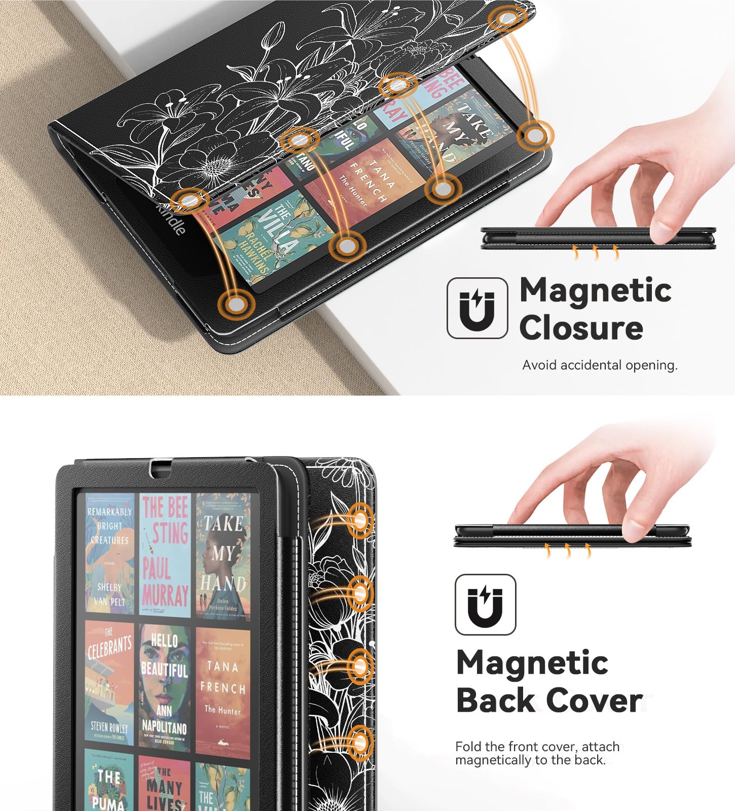 MoKo Case Compatible with Kindle Paperwhite (12th/11th Generation-2024/2021) Compatibility: Designed for Kindle Paperwhite 11 only. Full access to all ports and controls. Premium Material: With premium PU leather exterior and microfiber interior, this case is soft to touch while it can protect your device well from scratches. Lightweight & Thin Slim and lightweight hard back cover design adds minimal bulk while protecting your precious device. Smart Stand Cover: The front cover can be folded to be a stand. It is convenient for you to use when you want to hold your tablet. Elastic Band: The handstrap on the interior of the front cover can help you grip tablet more firmly. The elastic band on the exterior of the back cover and the magnetic closure can make the cover be closed more firmly so that the case can protect your tablet well from possible damage. Auto-Sleep/Wake: You can wake up the tablet by opening the lid or make it enter sleep mode by closing the lid. No need to use buttons.