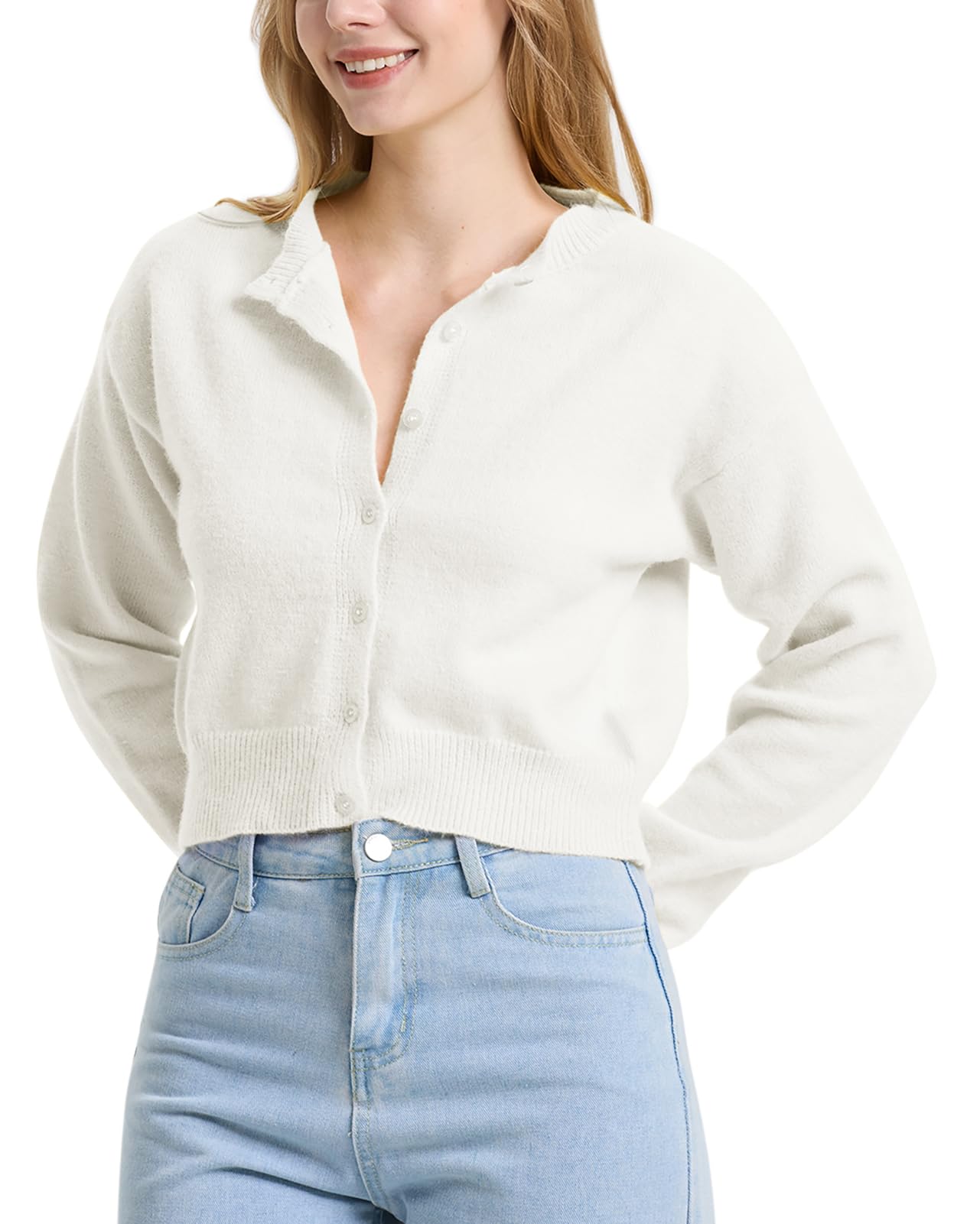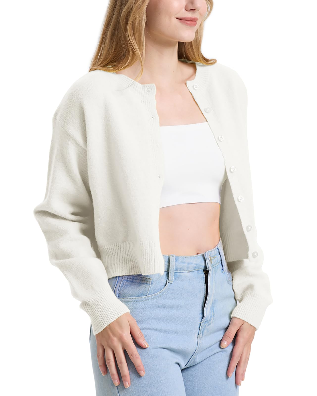 Feature: The cute knit cardigan features with long sleeve, crew neck, button down closure, open front short cardigans for women, crop length fit with the tiniest part of the waist, makes you look more slim and tall.