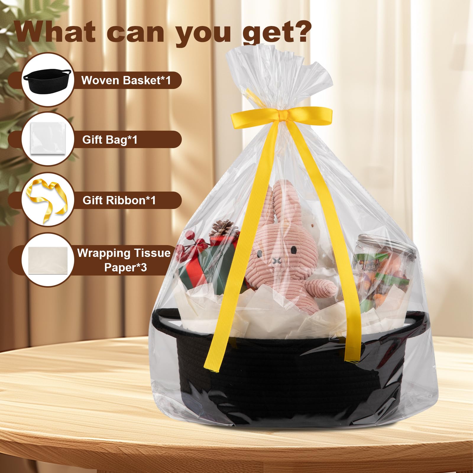 Ideal gift choice: This empty gift basket is cute and stylish, each small basket comes with a gift bag and ribbon, as well as 3 sheets of gift wrap tissue paper, which can better decorate, protect the stored items and can be used as a gift basket at any time