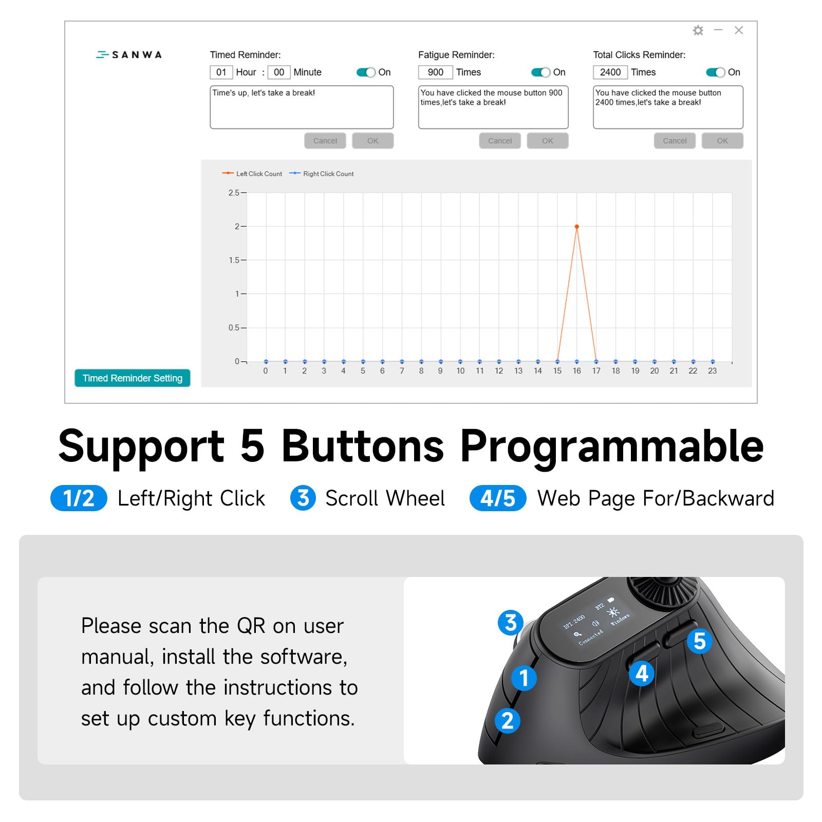 Customizable Buttons with Software - Supports buttons customization through SANWAβs software (see manual for details). Download and install to easily assign functions to buttons. Note: The software must remain open to enable custom button functions. Software only works with Windows system.