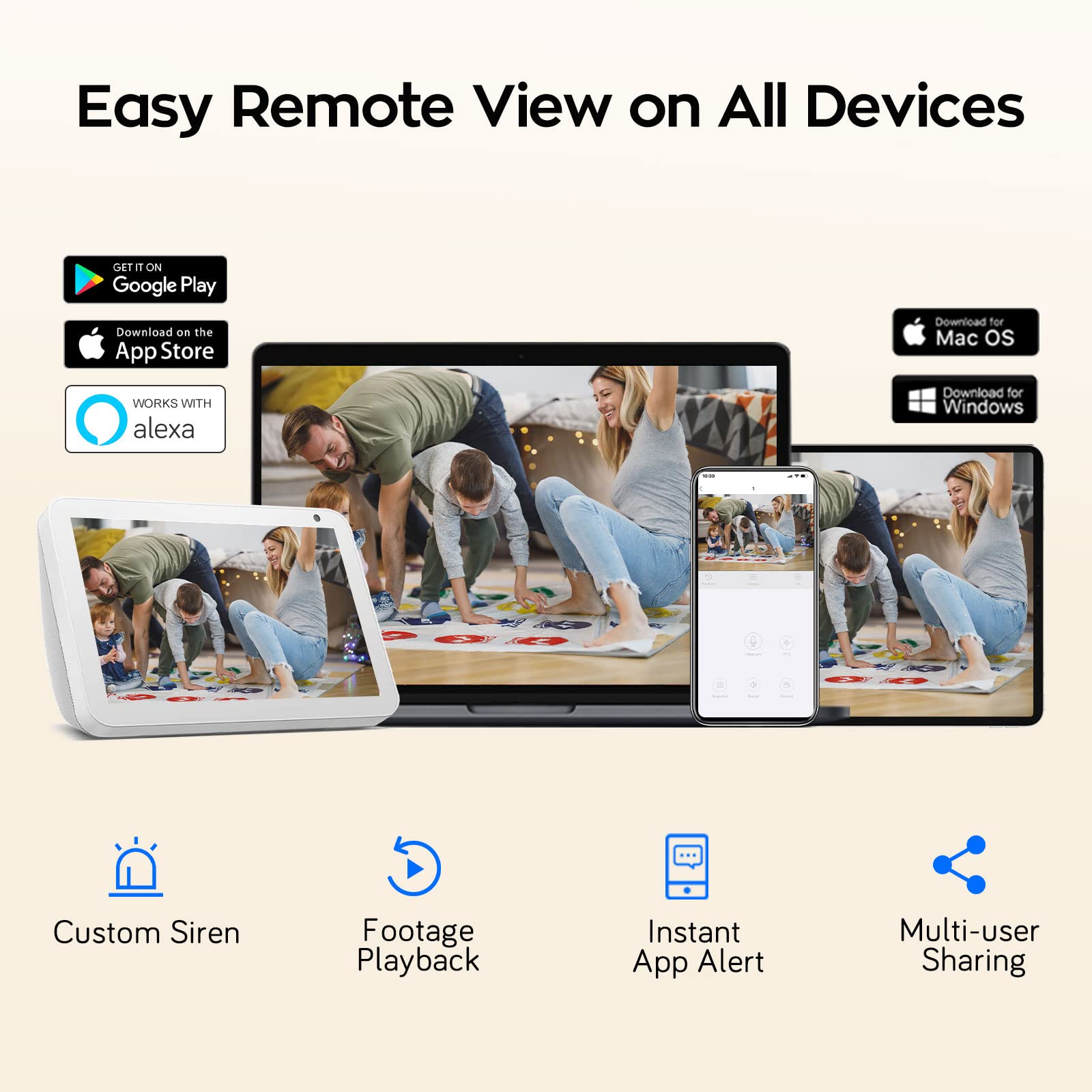 【Hassle-Free Operation | Alexa Compatible + Standalone Linux OS】One-click camera pairing in seconds via on-screen guide; scan a QR code to connect the free mobile app for remote live view/playback anywhere, anytime. Works with Alexa for voice control to display camera feeds. Embedded Linux OS runs 100% standalone (no internet/other devices needed), comes with a USB mouse for easy operation on a monitor/TV.