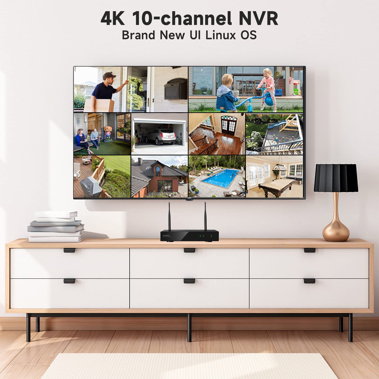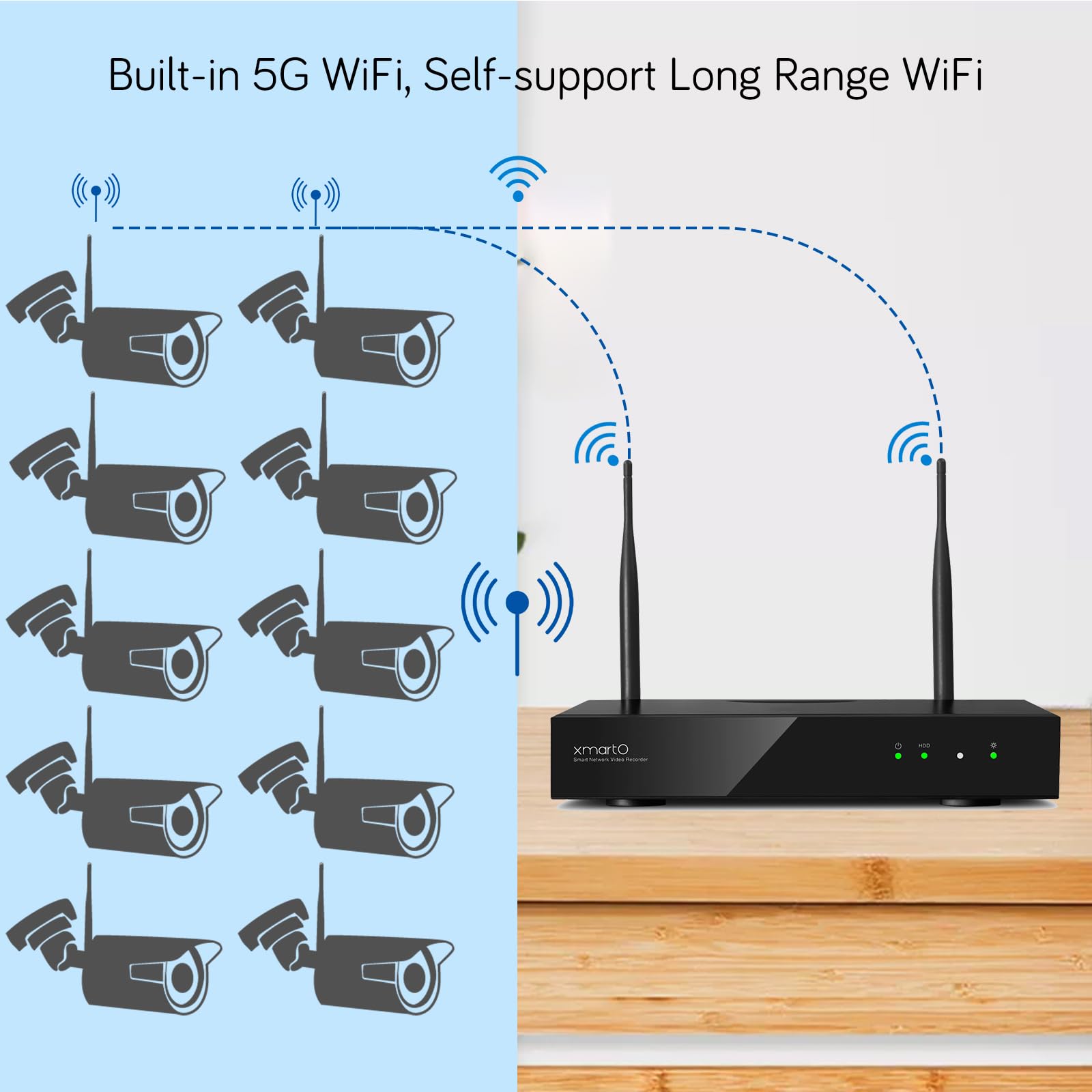 【10-Channel 4K Long Range WiFi6 Exclusive Compatibility】Supports simultaneous management, viewing and recording of up to 10 XMARTO WiFi6 cameras (720p-4K resolution). Built-in latest Long Range WiFi6 router ensures ultra-stable camera connections with minimal signal dropouts. NOTE: WORKS WITH XMARTO WIFI6 CAMERAS ONLY—confirm your camera model before purchase to avoid incompatibility issues.