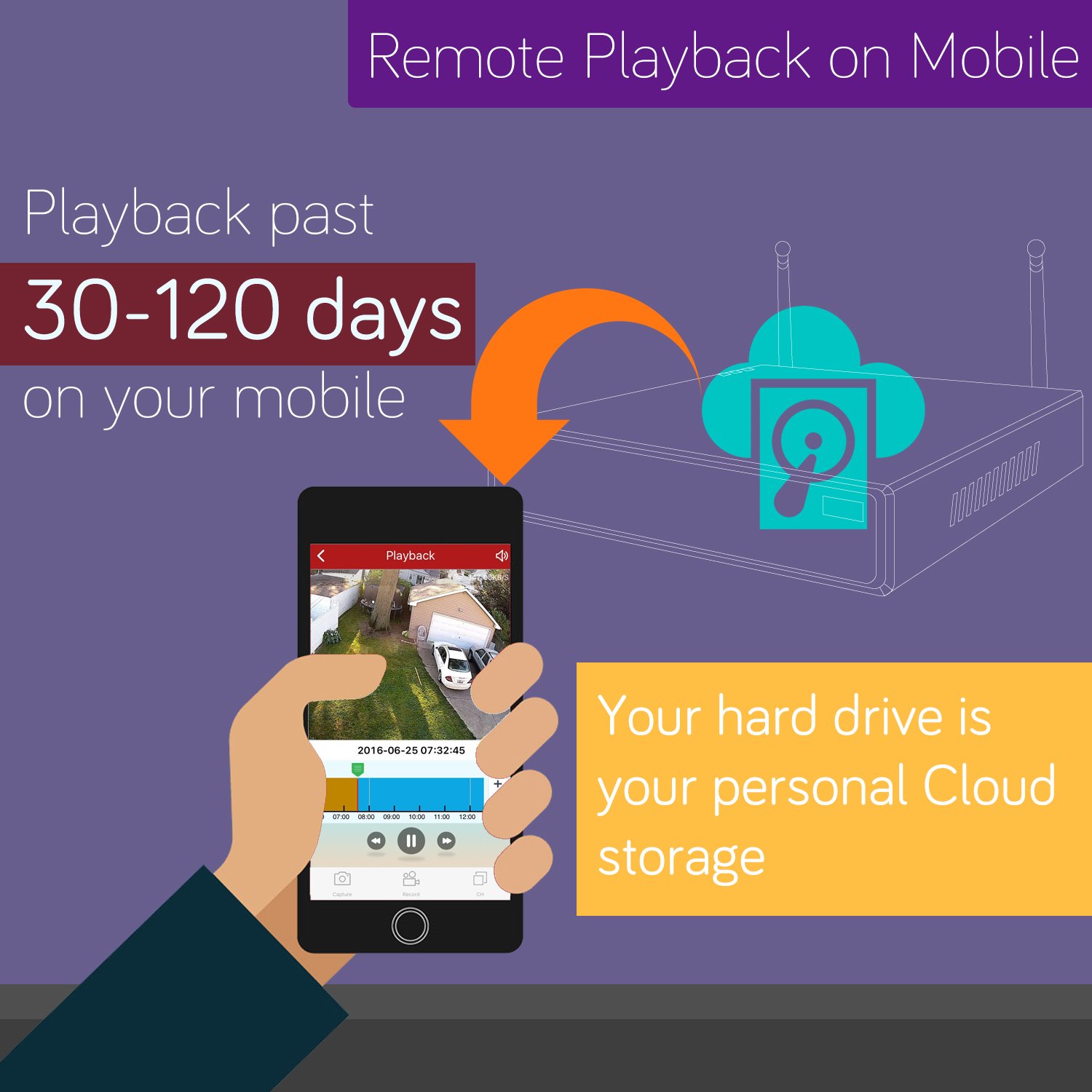 【Flexible SATA Storage | No Monthly Fees + Optional Cloud Backup】Supports 1-6TB SATA local hard drive (HDD NOT included) – directly reuse HDDs from old PCs for free 24/7 local recording, storing weeks/months of video footage with no monthly fees. Optional cloud storage is available, fully customizable to backup specific camera videos as you wish.