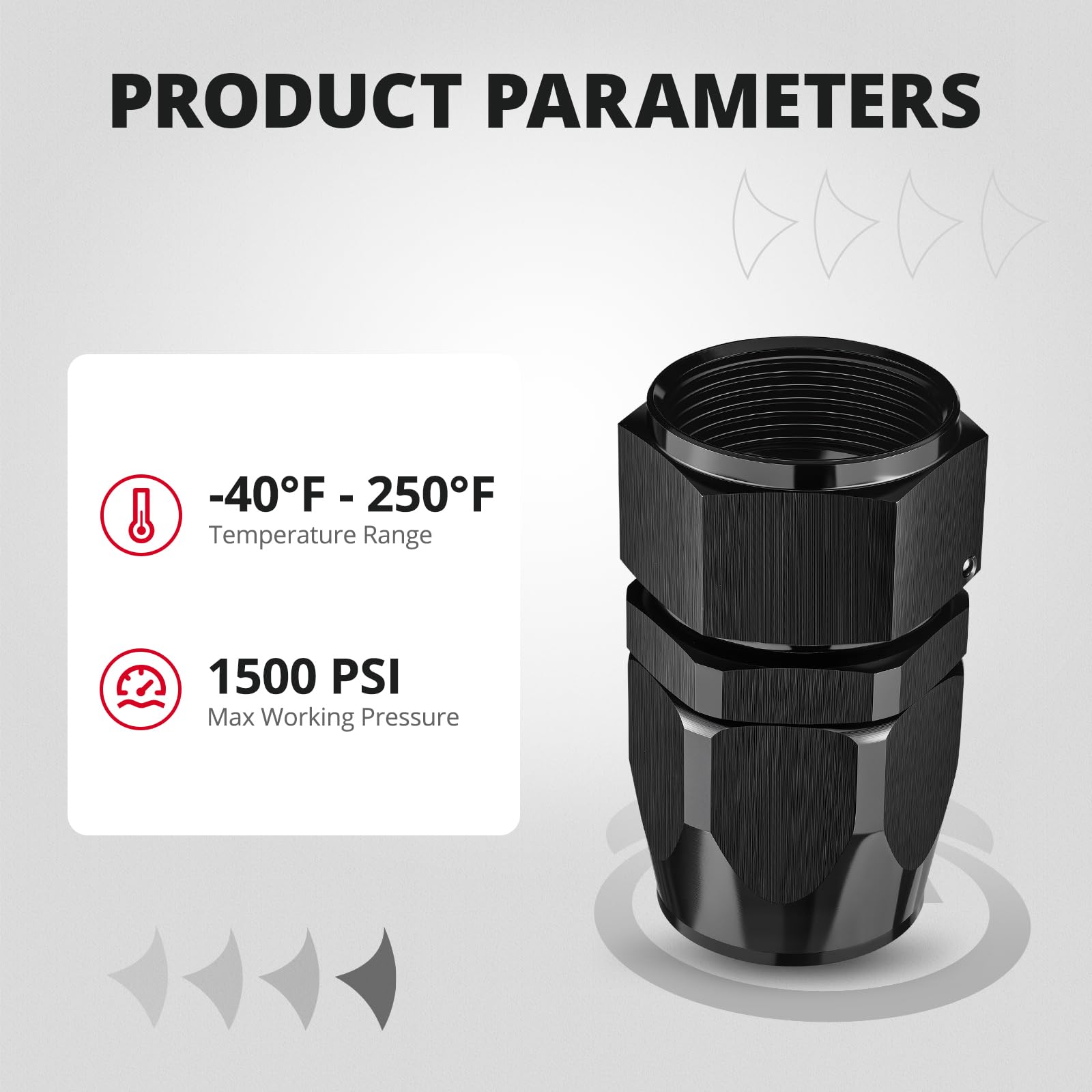 [Parameter] Max Working Pressure: 1500PSI. Working Temperature Range: -40℉ to 248℉ (-40℃ to 120℃).