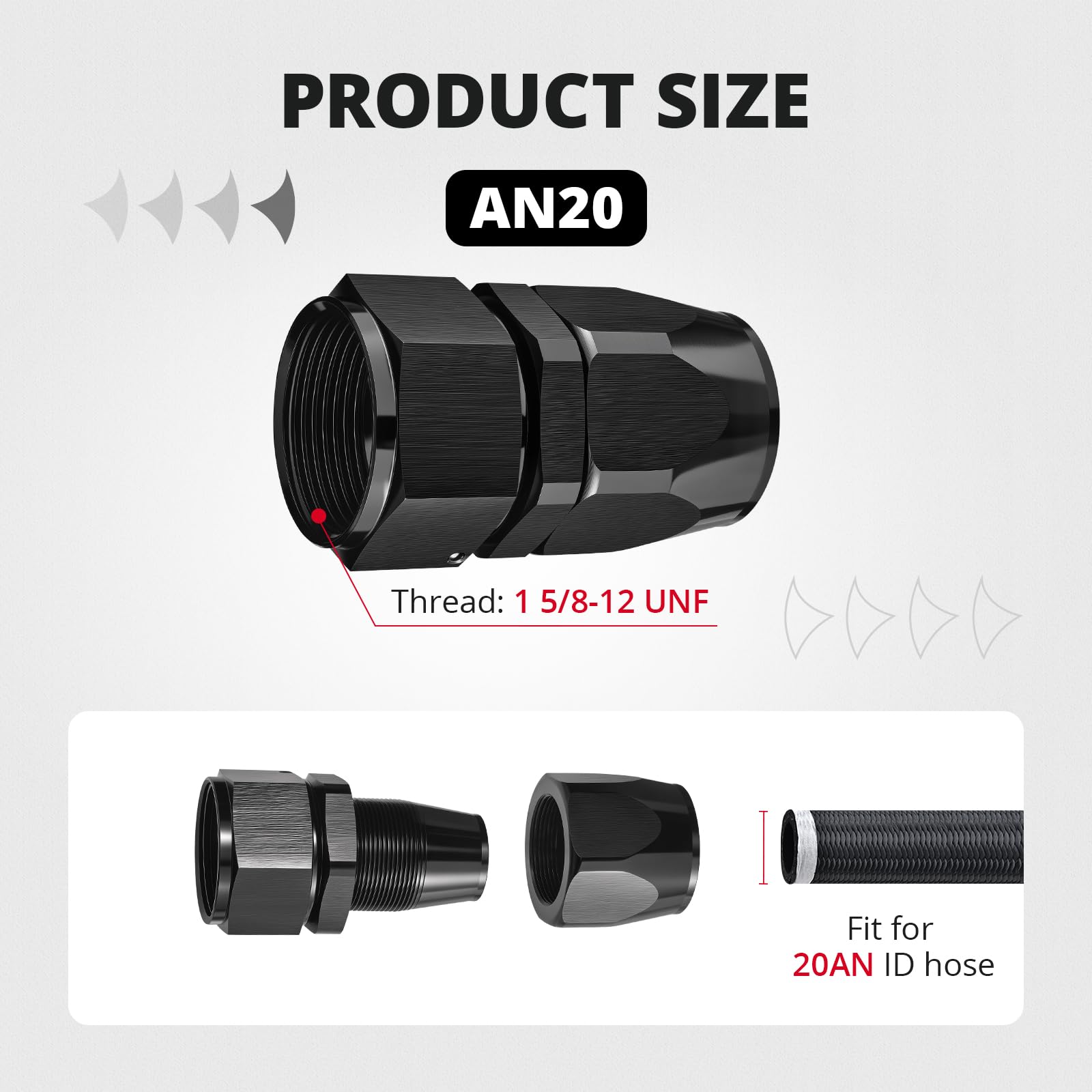 [Size] The thread size of 20AN is 1 5/8-12 UNF. The AN side is sealed by a 37 degree angle.