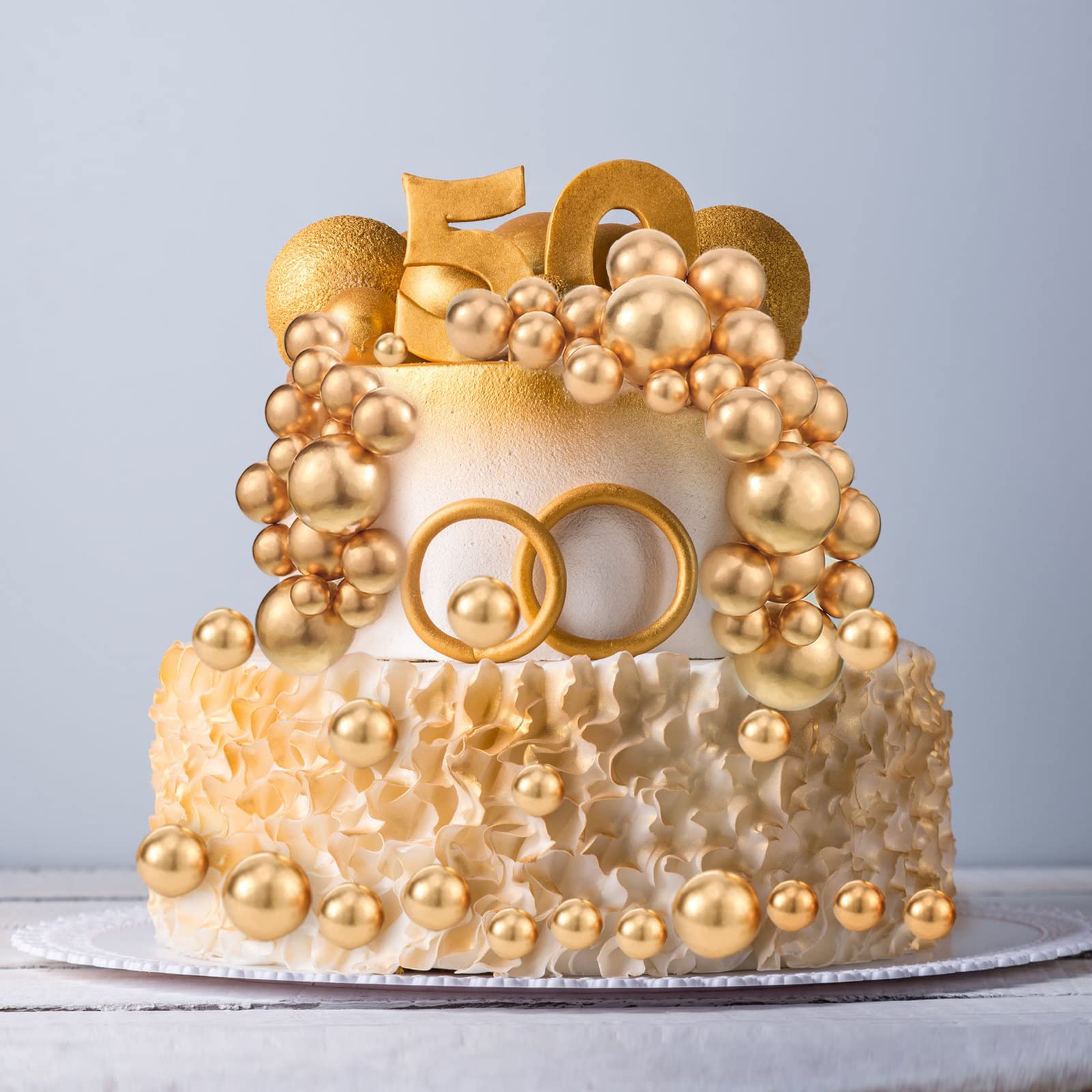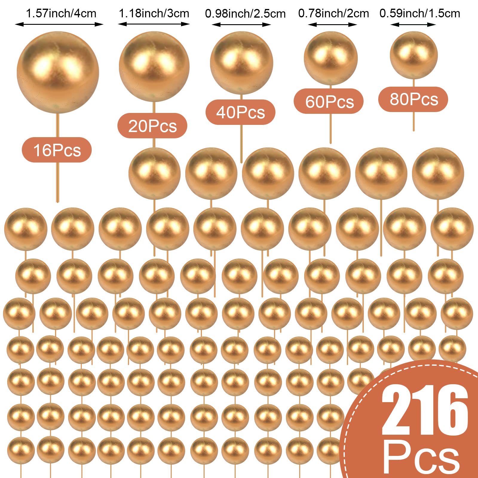 5 Different Sizes: the gold balls cake toppers have 5 different sizes, they are approx. 1.57 inch/ 4 cm, 1.18 inch/ 3 cm, 0.98 inch/ 2.5 cm, 0.79 inch/ 2 cm and 0.59 inch/ 1.5 cm, diverse sizes for you to DIY your cakes