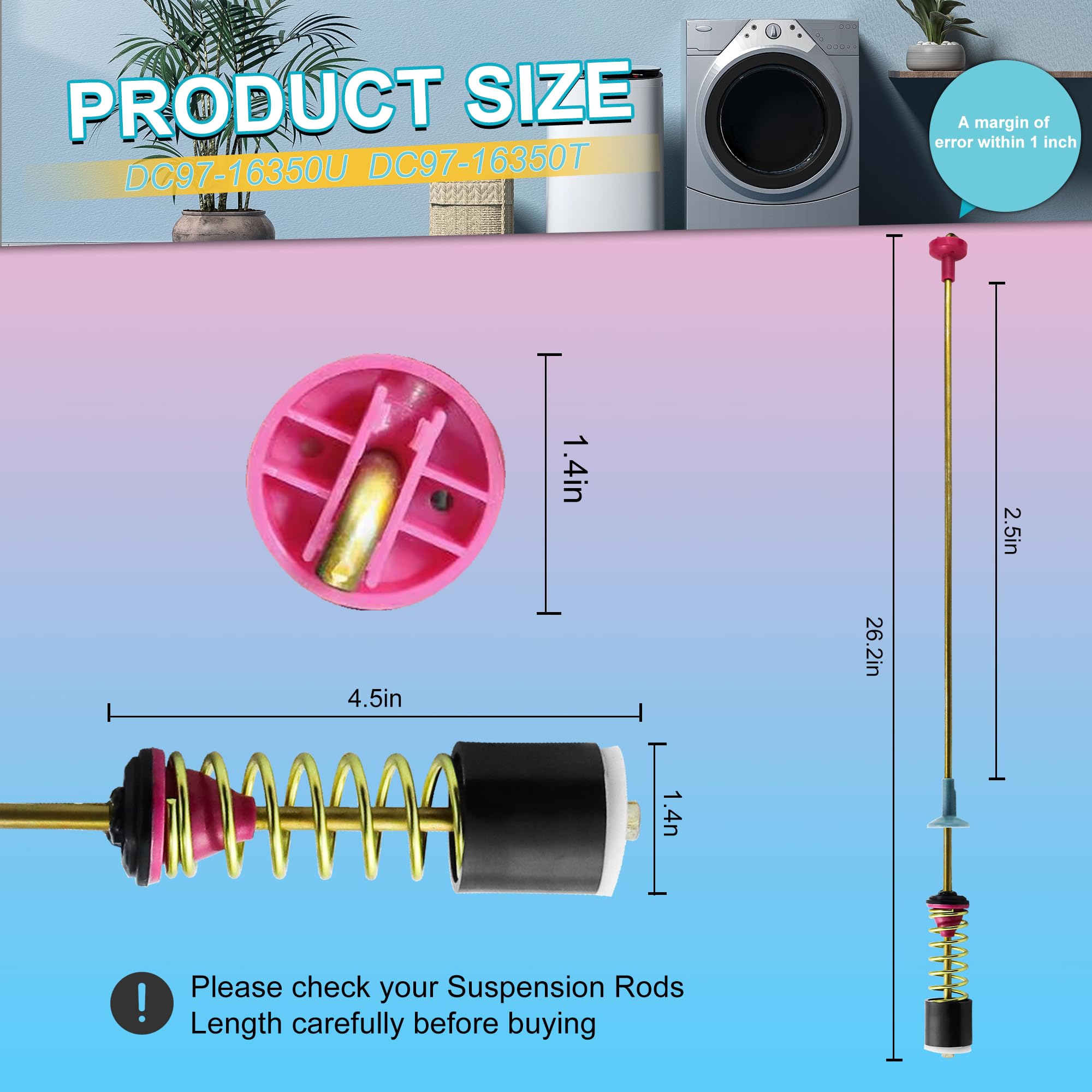 γππππ πππ π ππ π ππ πππππππ πππ-ππππ πππππππγVypart DC97-16350U DC97-16350T washer suspension rods kit (26.18ββ 4pcs) Perfect Fit for Samsung Top-Load Washers | Replacement for Samsung top-load washer parts: DC97-05280W, DC97-16350E/U/C/D/K/J, DC97-05280H/K/V/X, DC97-16350S, DC97-18610B, PS11719937, AP5966911 ; Ideal for Samsung WA400/WA40J/WA456/WA50R/WA45H/WA45M/ WA45T/WA45N/WA54R/WA545 series.
