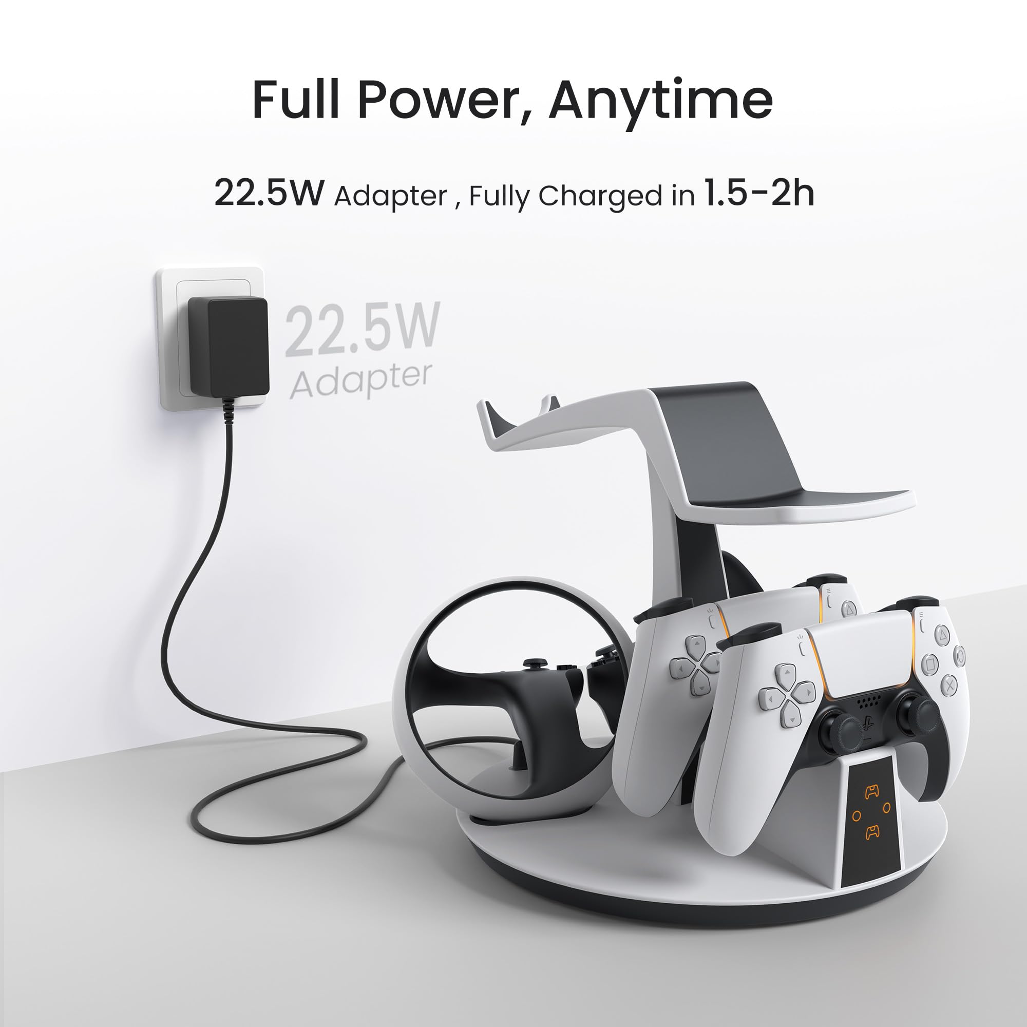 Fast and Reliable Charging: Equipped with a powerful 22.5W adapter, this station ensures fast and efficient charging for all your devices. Fully charge your controllers in just 1.5-2 hours, so you’re always ready for your next gaming session.