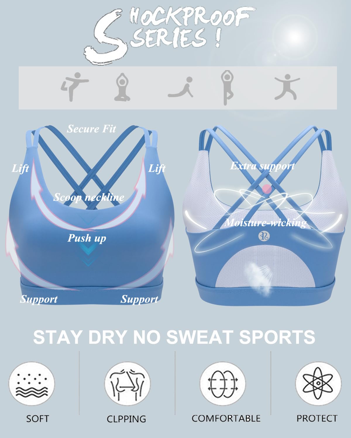 √MEDIUM SUPPORT- Perfect for A/B cups, Light compression sits close to keep everything in place and minimizes bounce, elastic band underneath, prevent rolling up. Whether you're running a 10k or just running some errands, the sports bras for women high impact will serve your lifestyle's needs. Perfect for tennis, running, yoga,workout or whatever else you throw at it.