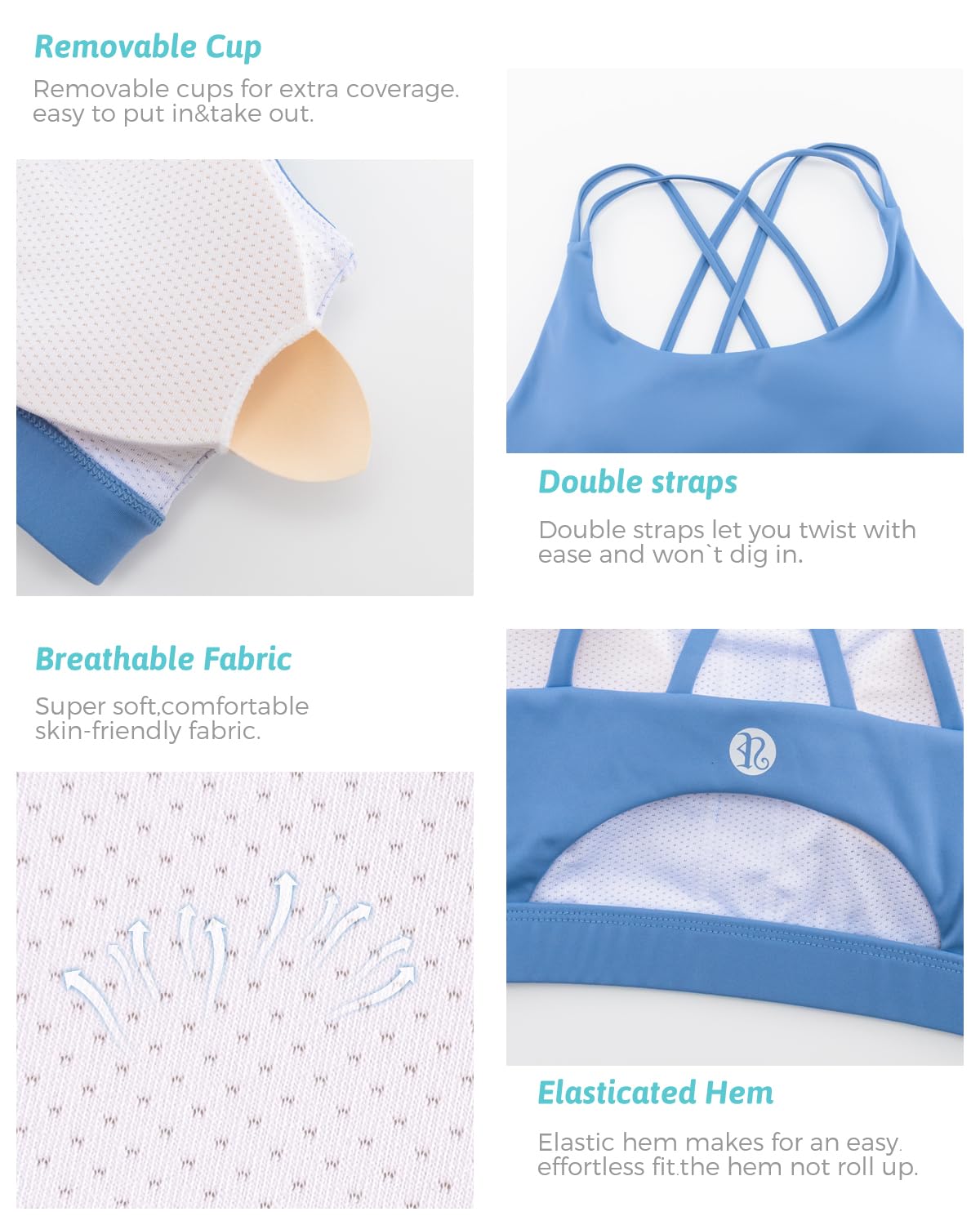 √YOUR SECURE FIT - Strappy design meets sporty style. Super soft scoop neckline with light, removable pads. Open cutout back styling sports bras for women medium support, widen band underneath the breast ensures a tight secure fit. Removable cups for extra coverage. The removable vertical cotton bra pads are easy to clean.The padded sports bra which always retains its shape and prevent bra bulges, caresses your figure to adjust to your curves.