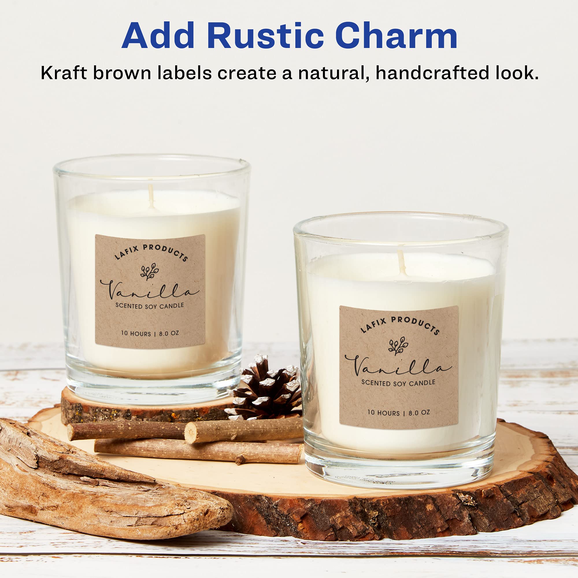 Add a touch of rustic charm to handmade gifts and products with Avery Kraft Brown Labels that let you create personalized gift labels, product labels, jar labels, and more