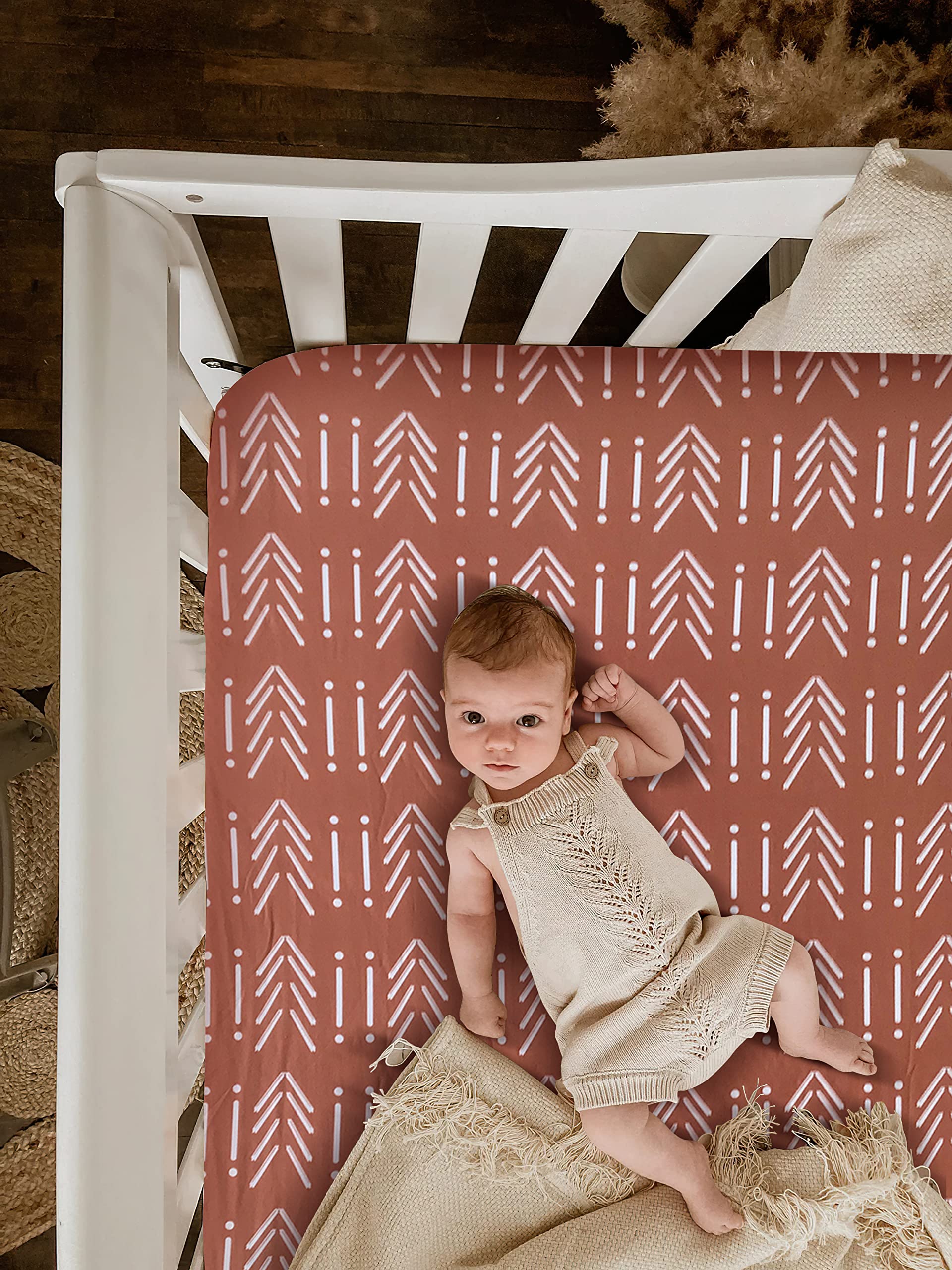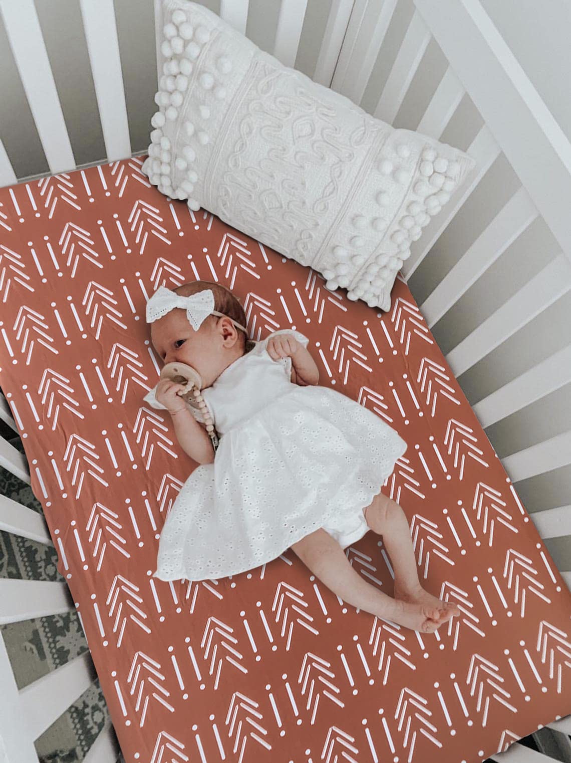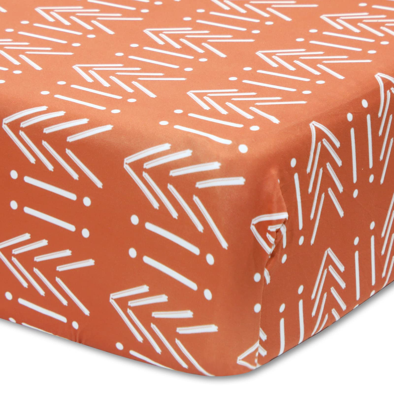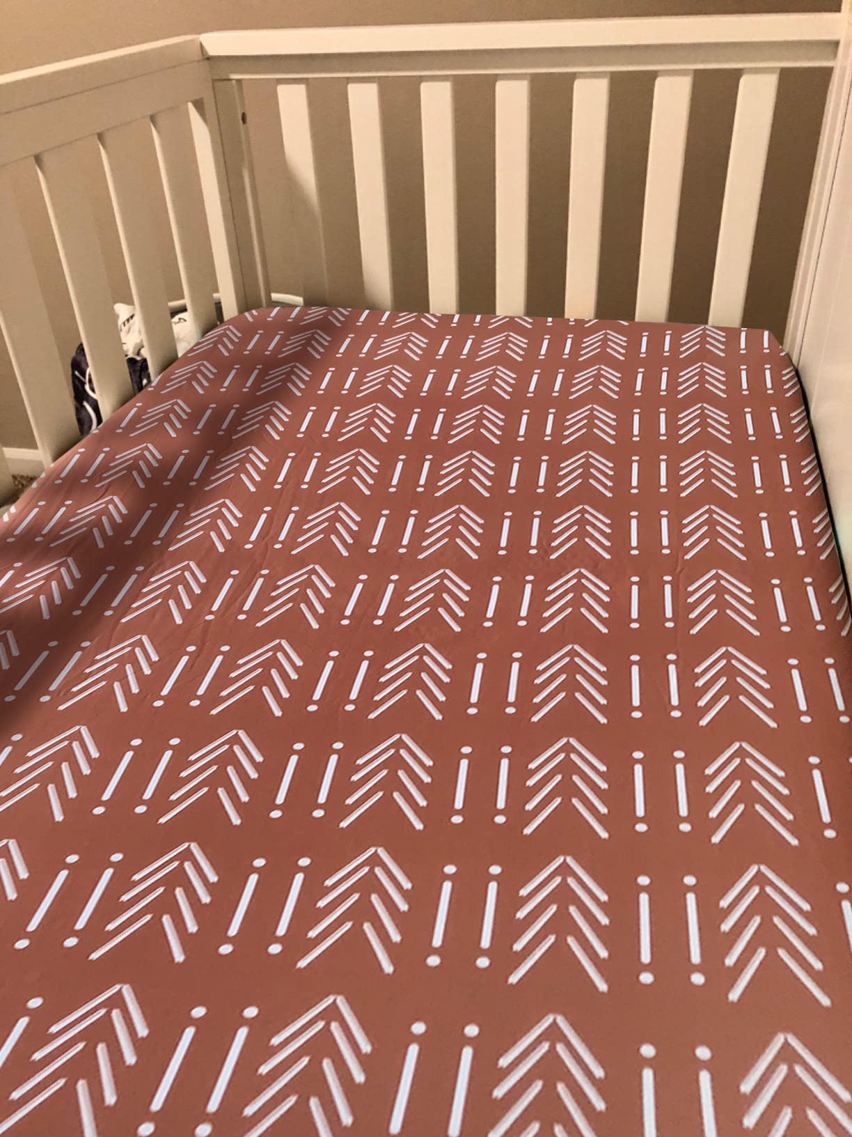 Rust crib sheets match perfect with our rust changing pad cover, nursing pillow cover, newborn lounger cover.