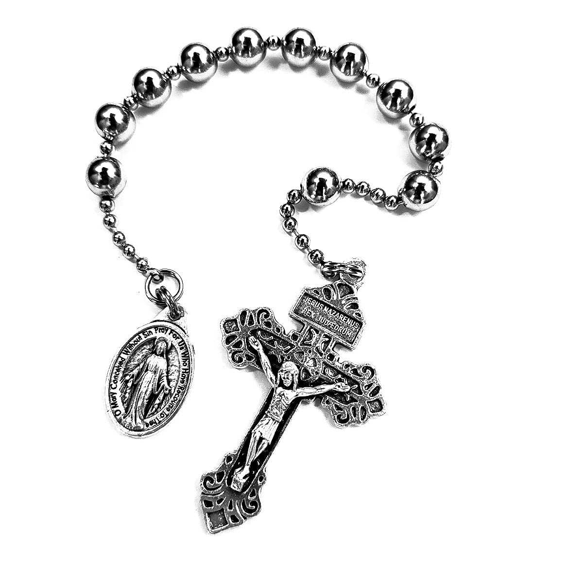 【SIZE】This single decade pocket edition has an overall length of 12 inches. They are extremely easy to carry in your pocket. The generously sized 8mm beads don’t kink, or tangle up, like ordinary jewelry style rosaries. The beautiful Pardon Catholic crucifix is of the highest quality and has great detail and is 2.25 inches tall. The Our Lady Miraculous Medal is 1 inch.