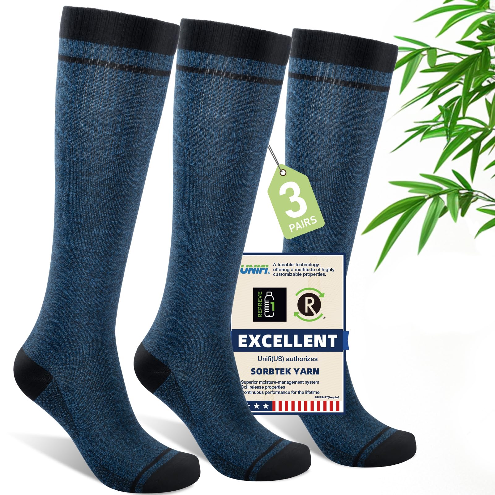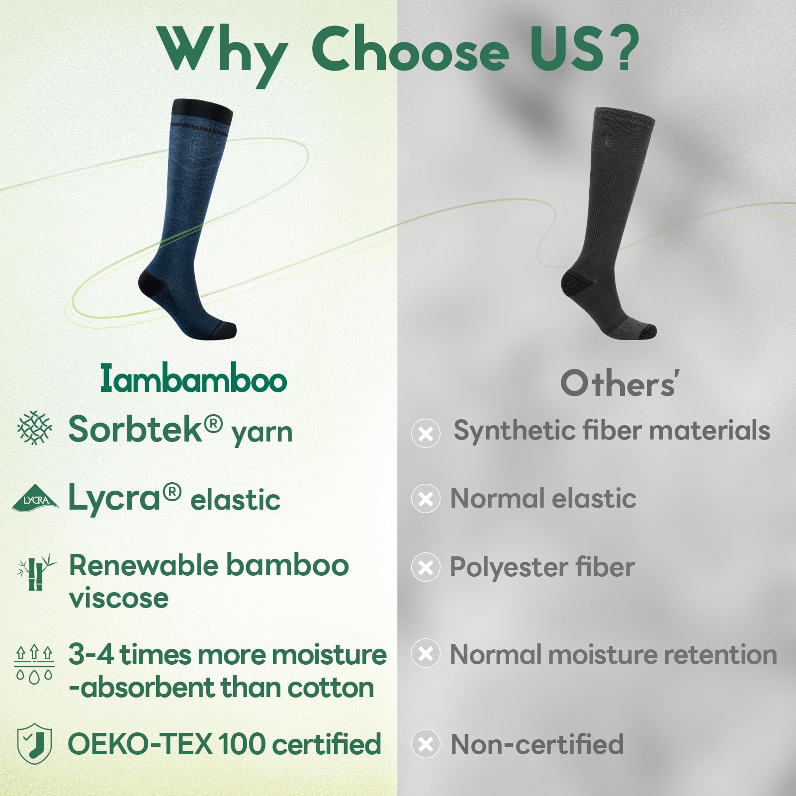 Ultra-Premium Blend:Made with 80% renewable bamboo viscose, advanced US Sorbtek yarn, and Lycra spandex, these compression socks enhance moisture-wicking by 60% while delivering superior breathability, odor resistance, and ultra-soft comfort. The lightweight graduated compression promotes circulation without restricting movement, offering easy-care durability for all-day wear—ideal for sensitive skin and extended seasonal use.