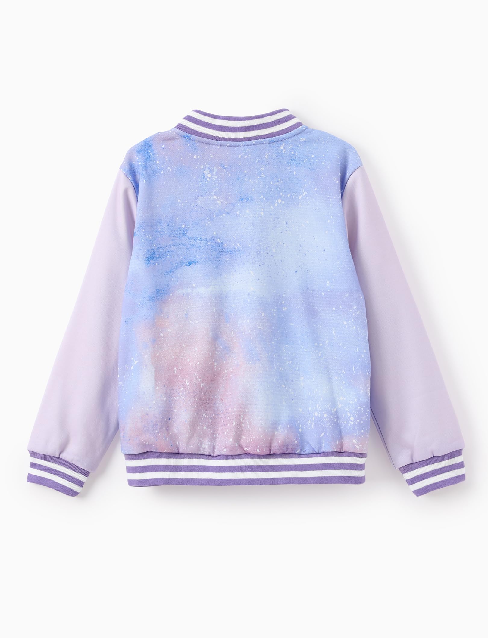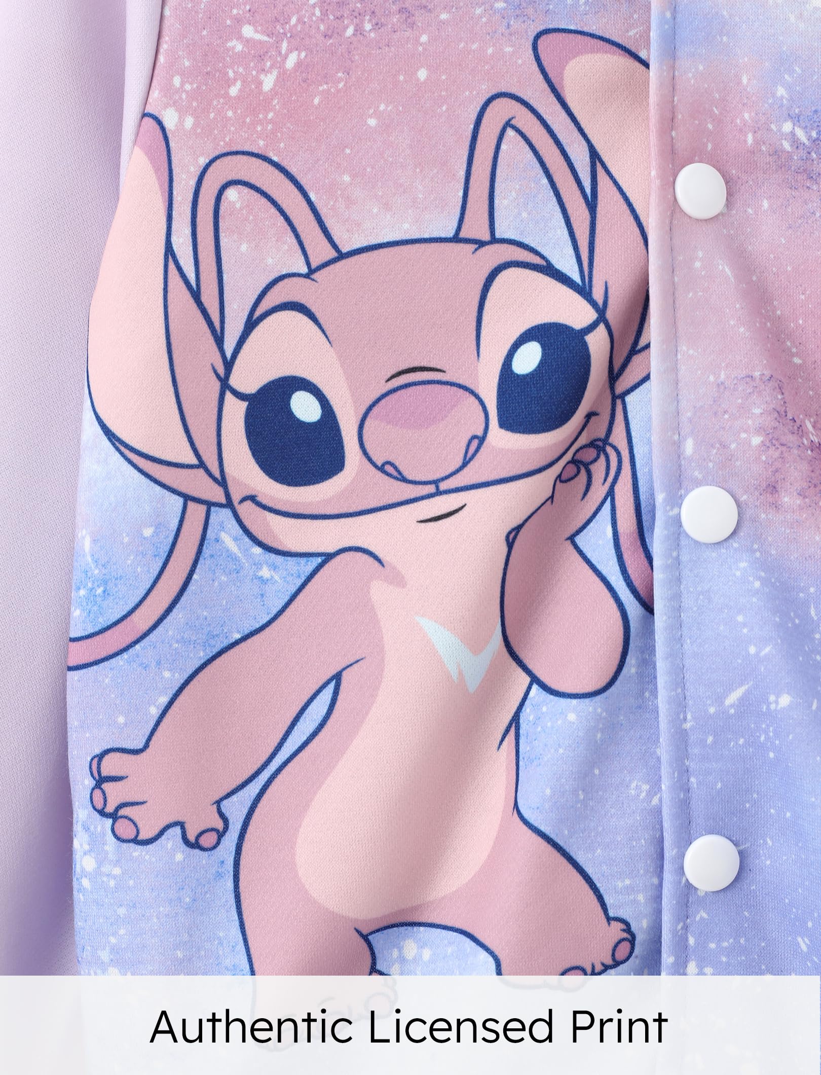 Charming & Whimsical Design: Let your little one embrace the spirit of Lilo & Stitch with this adorable Angel varsity jacket! Featuring Angel in a playful pose against a soft purple and pink galaxy design, this jacket combines fun and style. The "ANGEL" lettering adds a sweet touch. Perfect for kids aged 6-14, itโs ideal for casual outings, school, or any Lilo & Stitch fan event, offering both comfort and a magical, Disney-inspired look