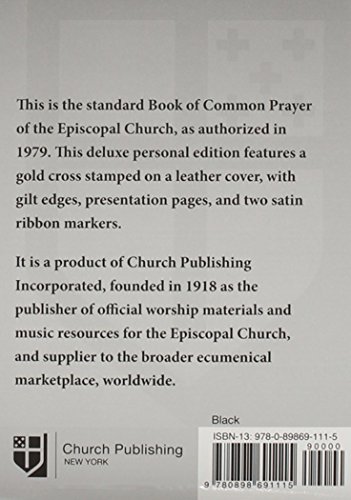 A beautiful and durable gift edition of the Book of Common Prayer. A gold cross is stamped on the bonded leather cover in your choice of five colors, with gilt edges, a presentation page, and two satin ribbon markers. Certificates of Baptism, Confirmation, and Marriage are included. 9-point font size. This is the standard Book of Common Prayer and Administration of the Sacraments and Other Rites and Ceremonies of the Church together with The Psalter or Psalms of David according to use in the Episcopal Church in the United States as authorized in 1979.