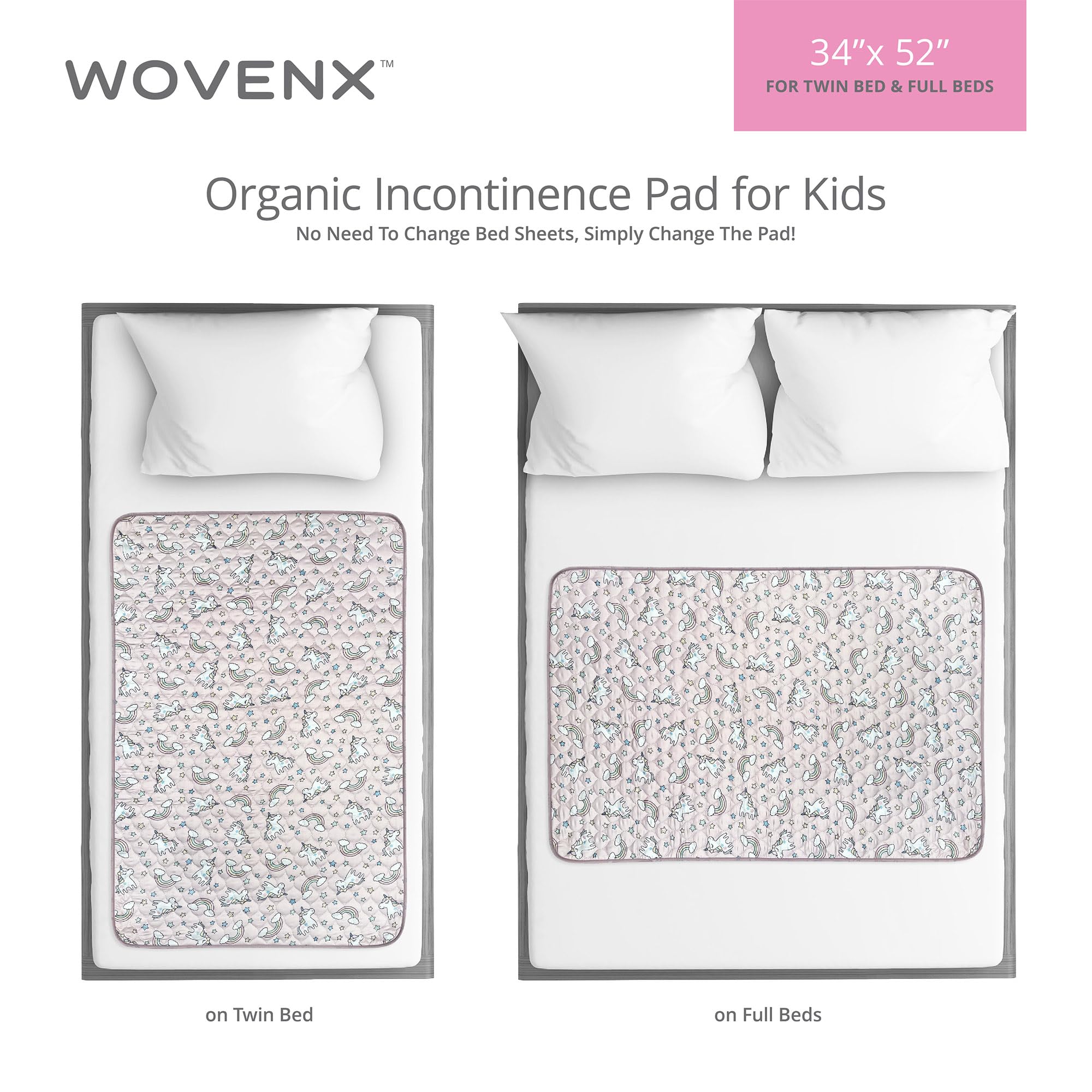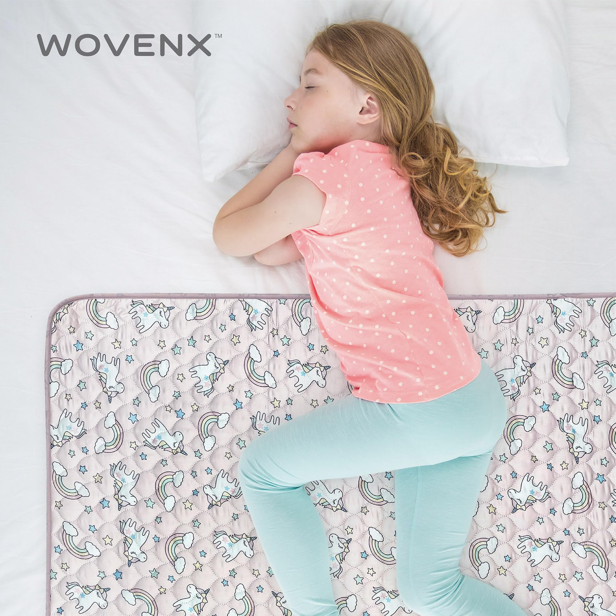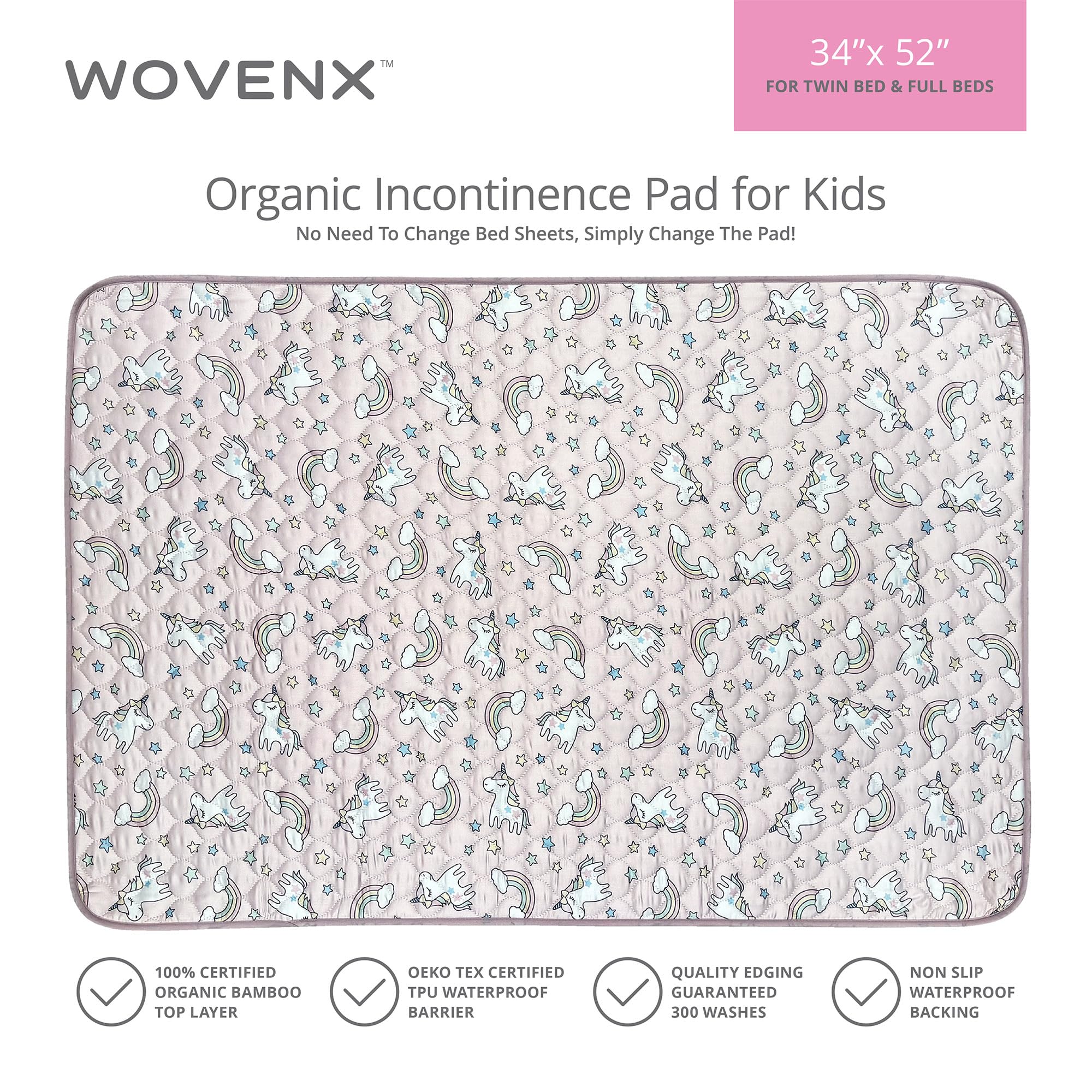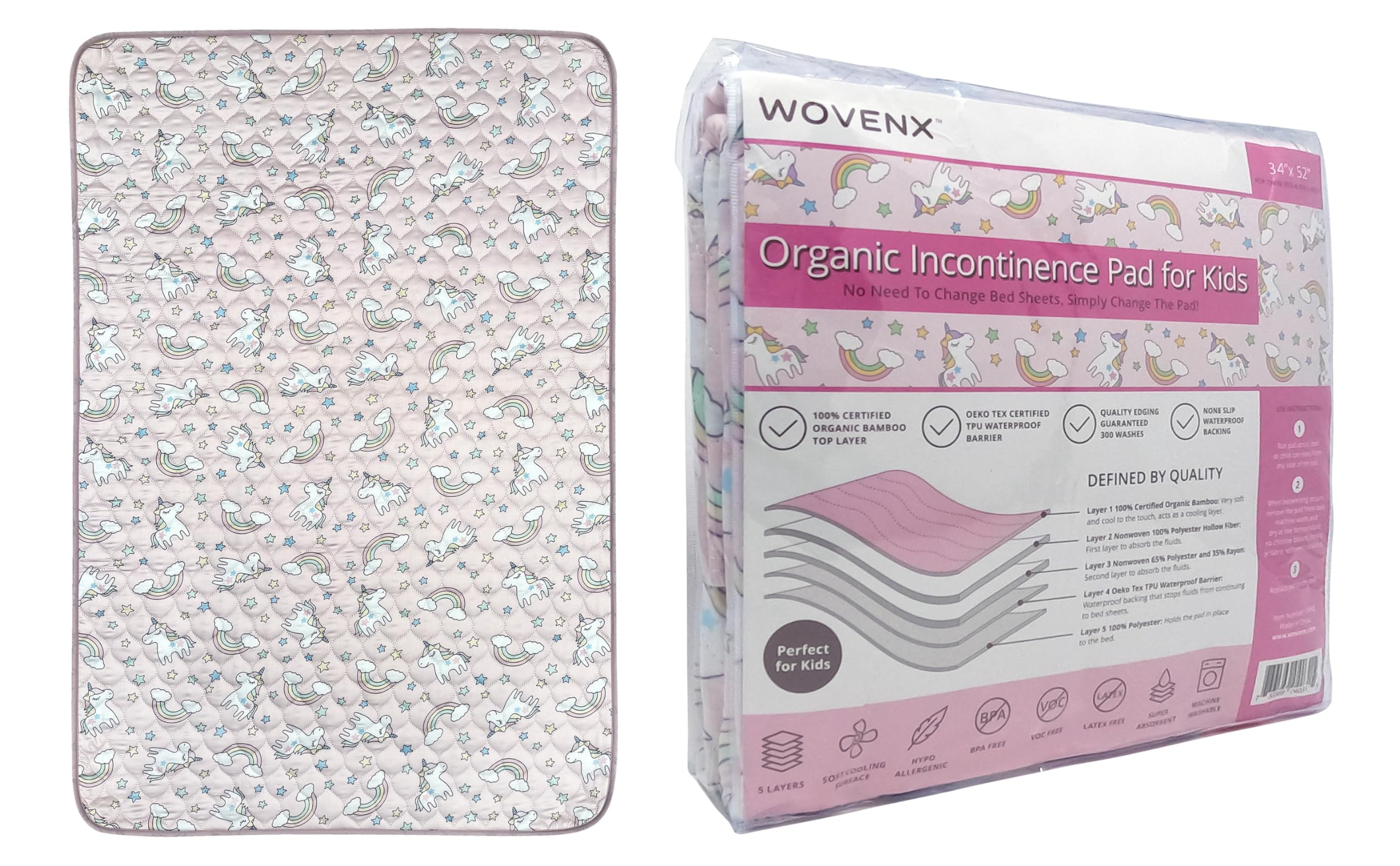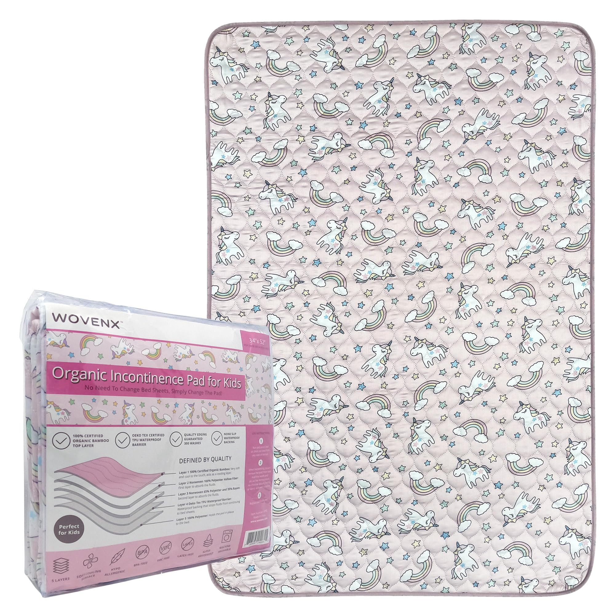 MULTI-LAYER PROTECTION: Designed to effectively absorb urine, keeping bedding dry throughout the night. WOVENX's children’s pee pads feature five layers, including: a viscose derived from bamboo comfort layer, two super absorbent nonwoven layers (polyester and rayon), TPU waterproof barrier to prevent fluids from leaking through, and polyester non-slip backing to stay in place.