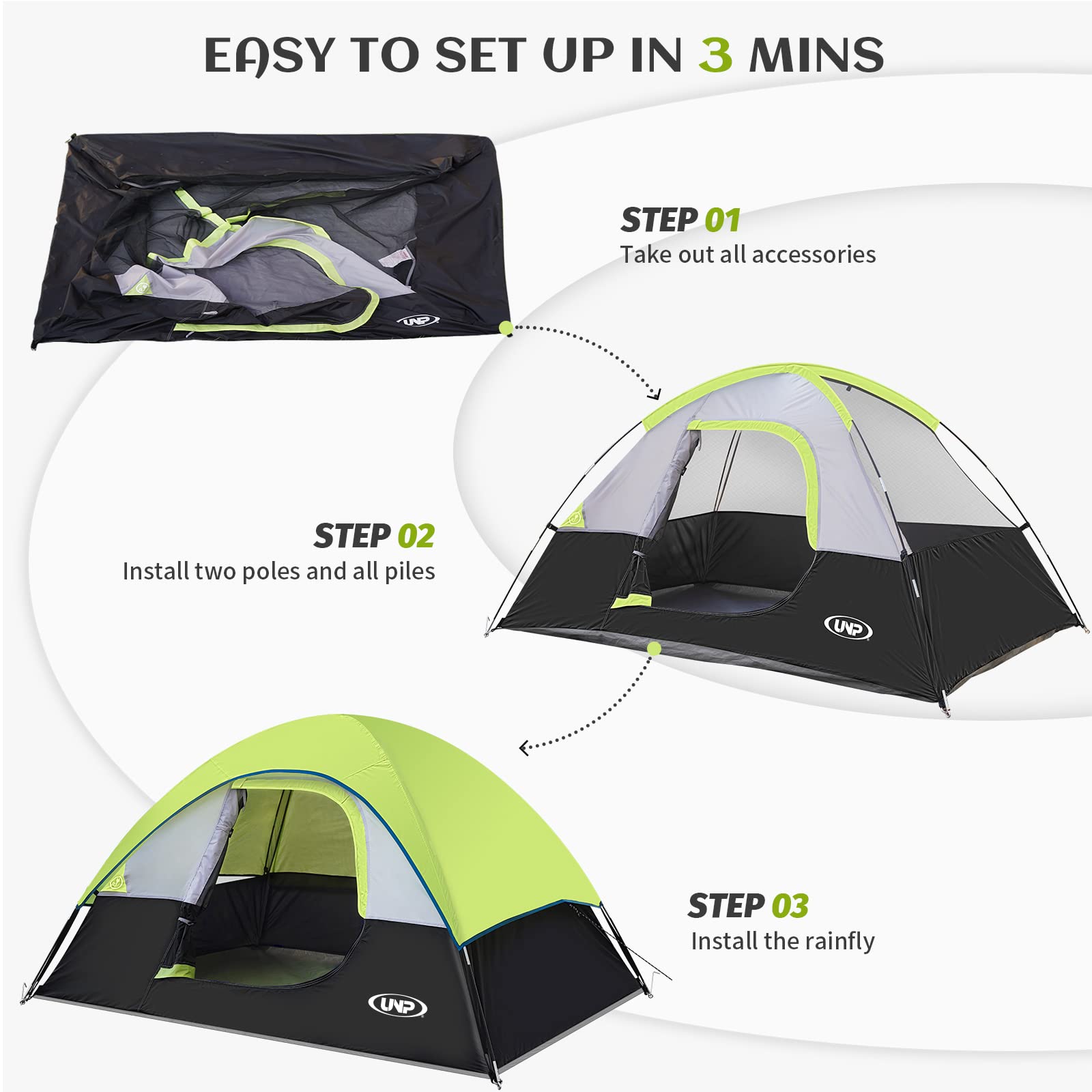 Easy To Set Up: The tents for camping that can be quickly assembled within 3 minutes and easily assembled by one person according to the procedures and instructions sewn inside the bag.