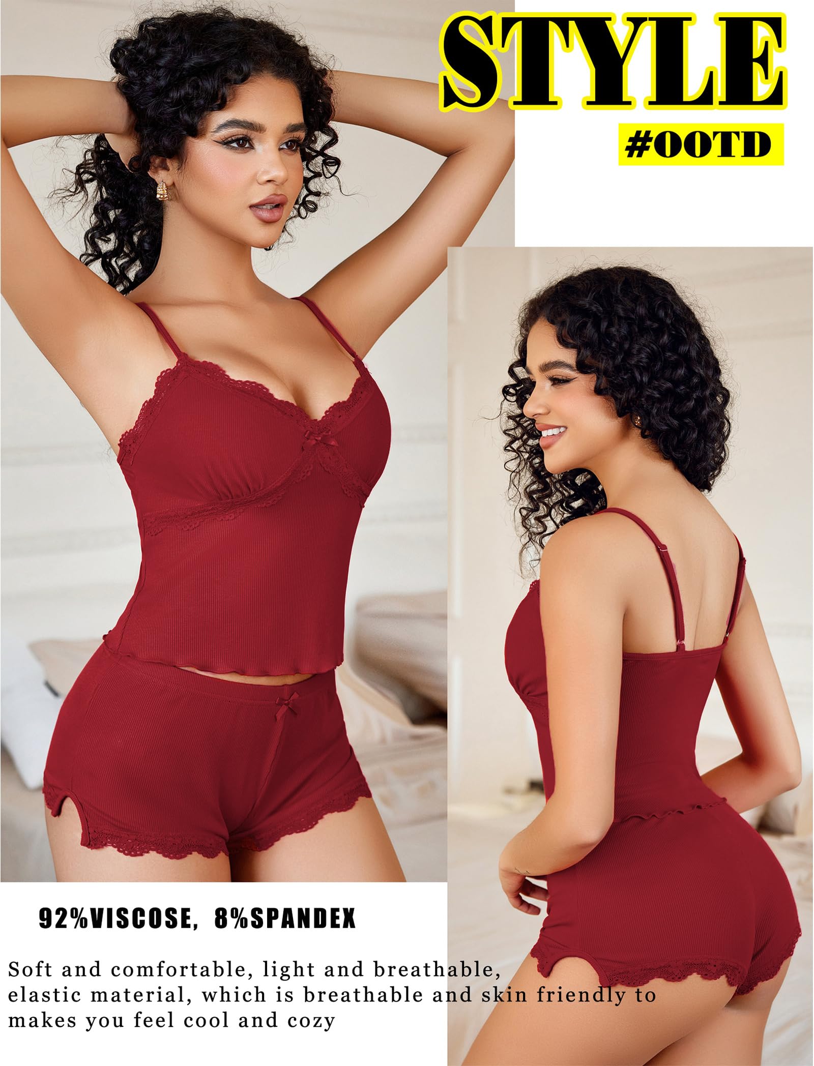 【Sexy Pajamas for Women】Sexy pajama set for women is made of 92% Viscose and 8% Spandex. Silky to the touch, super soft, sexy, breathable and comfortable, skin friendly, making you sleep well