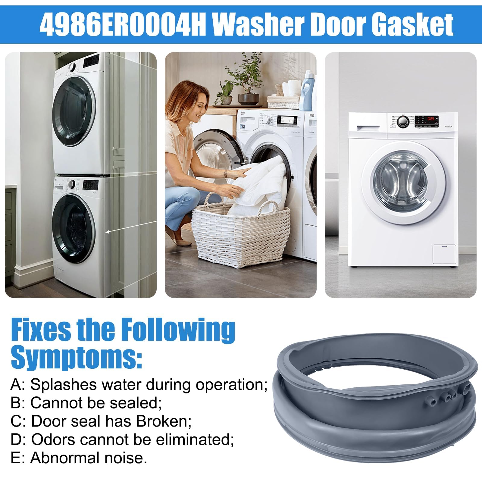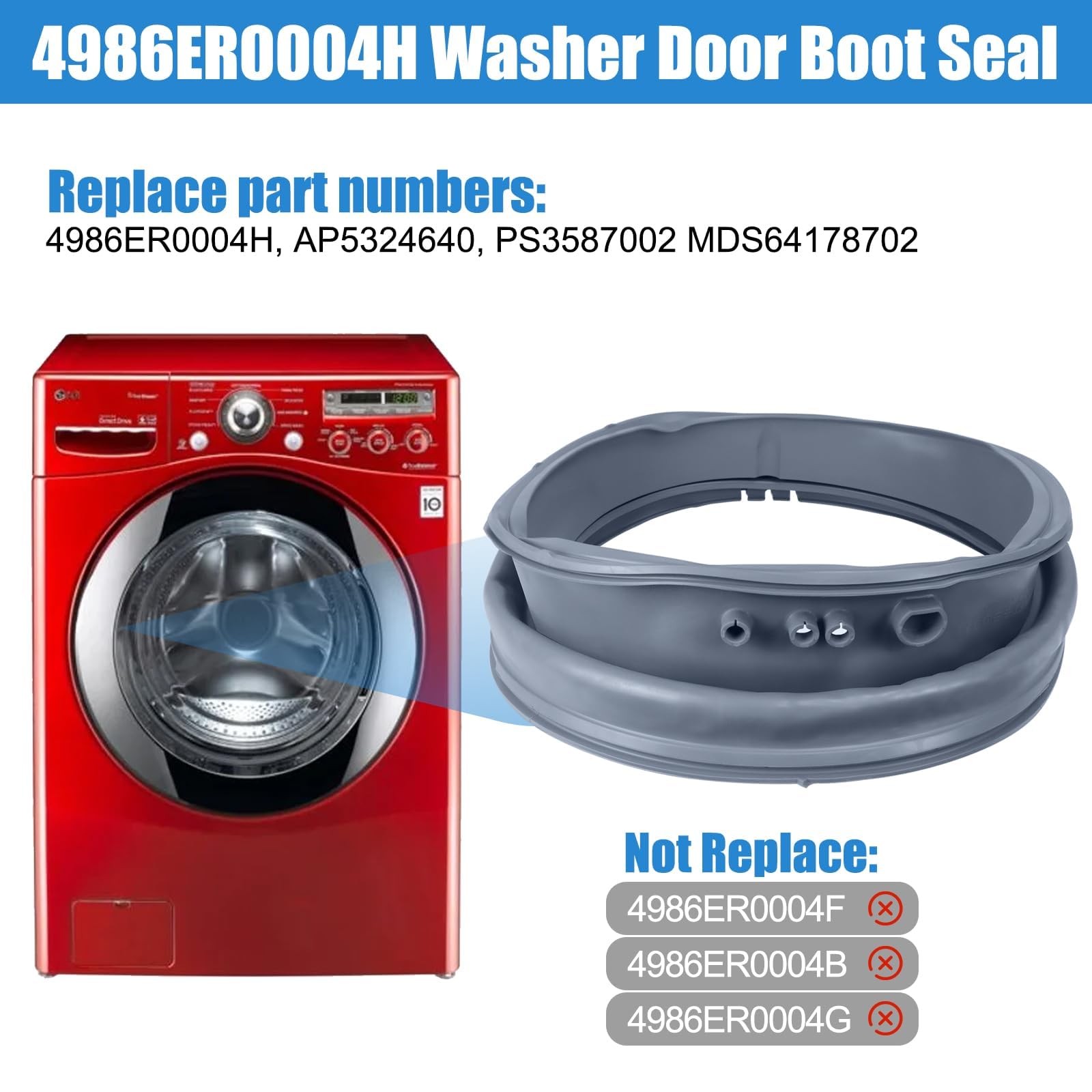 【4986ER0004H Rubber Seal For LG Washer Door Seal Replacement】4986ER0004H Washer Door Seal Replacement Part for LG,Kenmore Washer Door Gasket Replacement Part Numbers: 4986ER0004H, 2629363, AP5324640, PS3587002, MDS64178702.The upgraded 4986ER0004H lg front loaded washer door seal solves the following problems:A. Water splashing during operation; B. Failure to seal; C. Door seal has been damaged; D. Failure to eliminate odor; E. Abnormal noise.