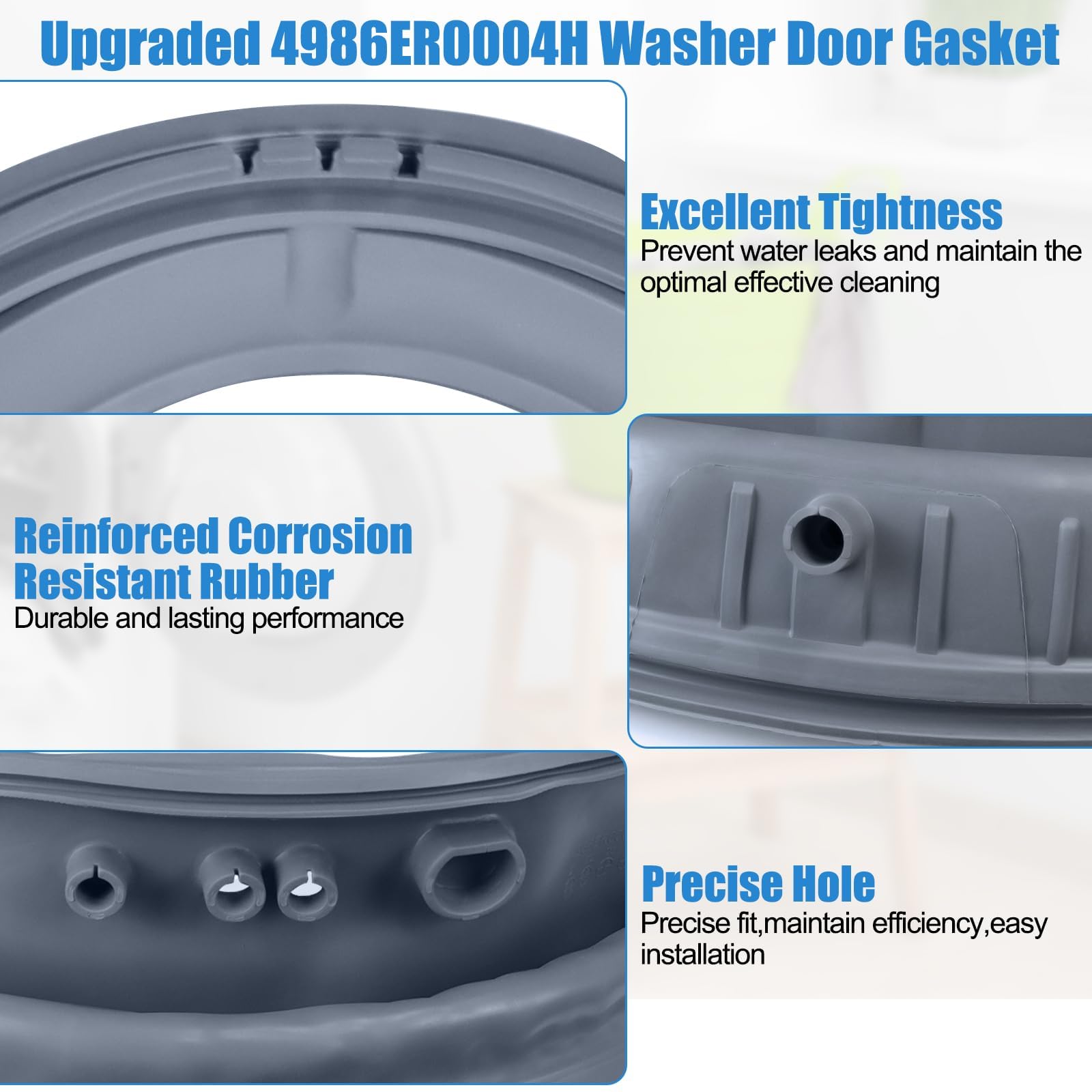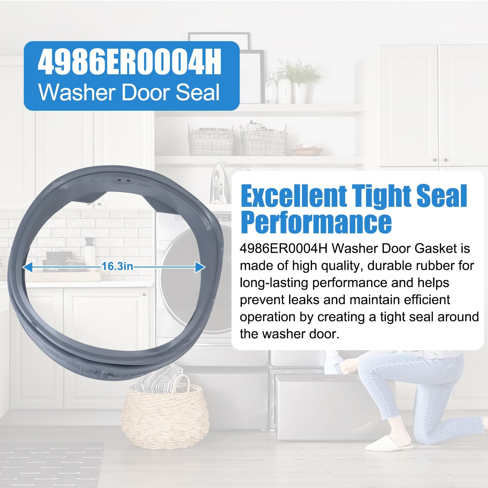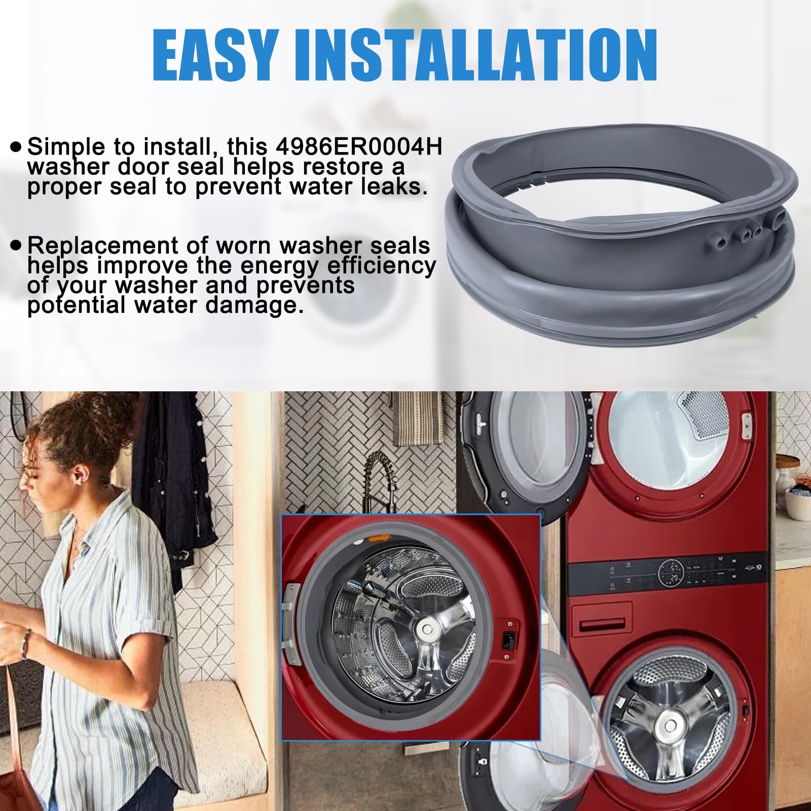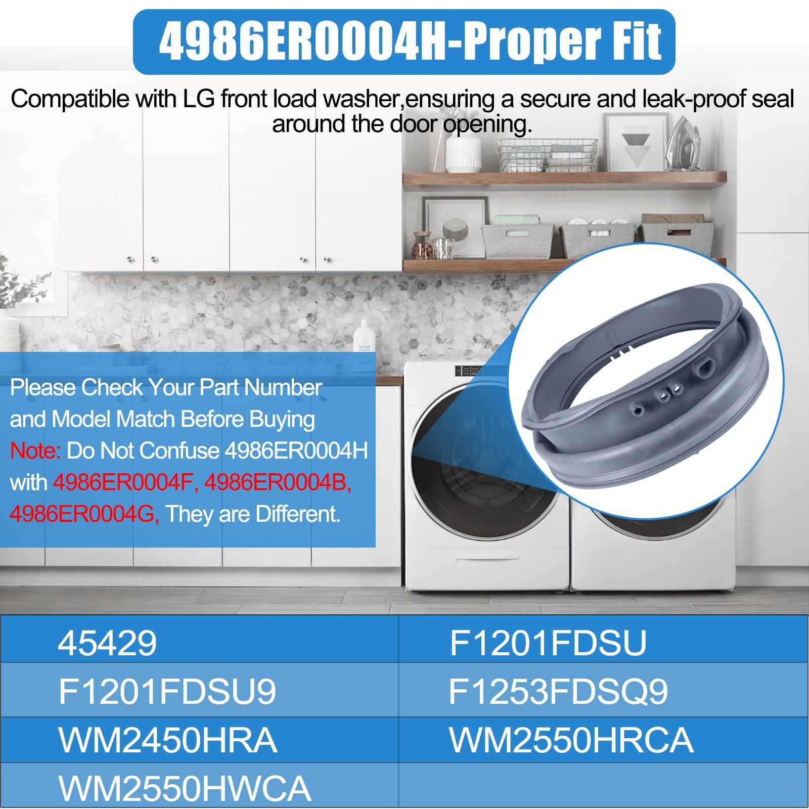 【4986ER0004H Washer Door Seal Compatible Models】This 4986ER0004H washer replacement seal for LG washer door gasket to ensure a perfect fit. Suitable for LG washer door boot model WM2450HRA, WM2550HRCA, WM2550HWCA, F1201FDSU9, F1253FDSQ9, F1201FDSU, 45429 Door Seal Gasket Parts Gasket.