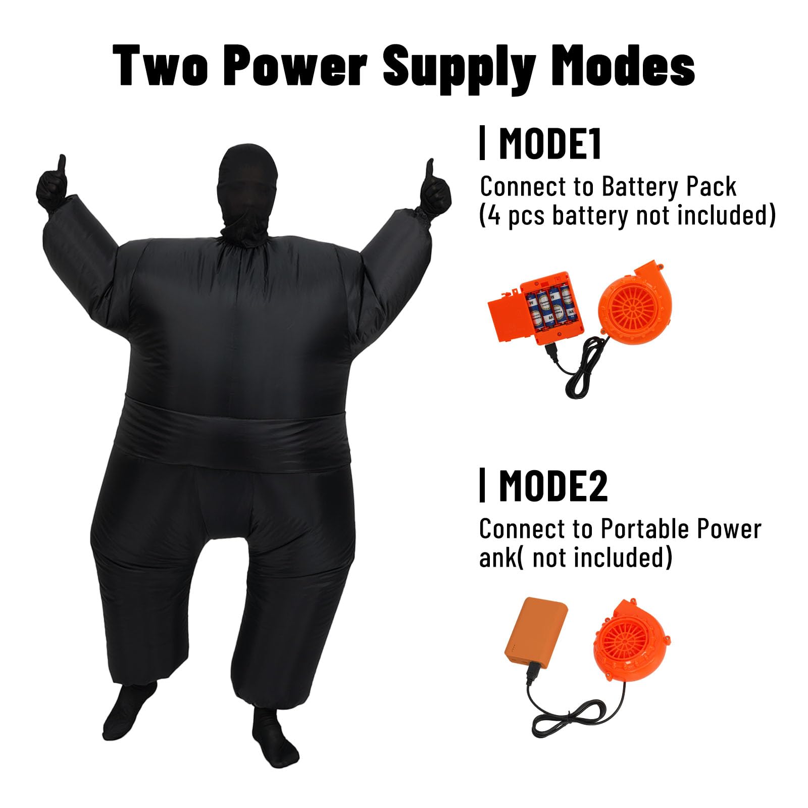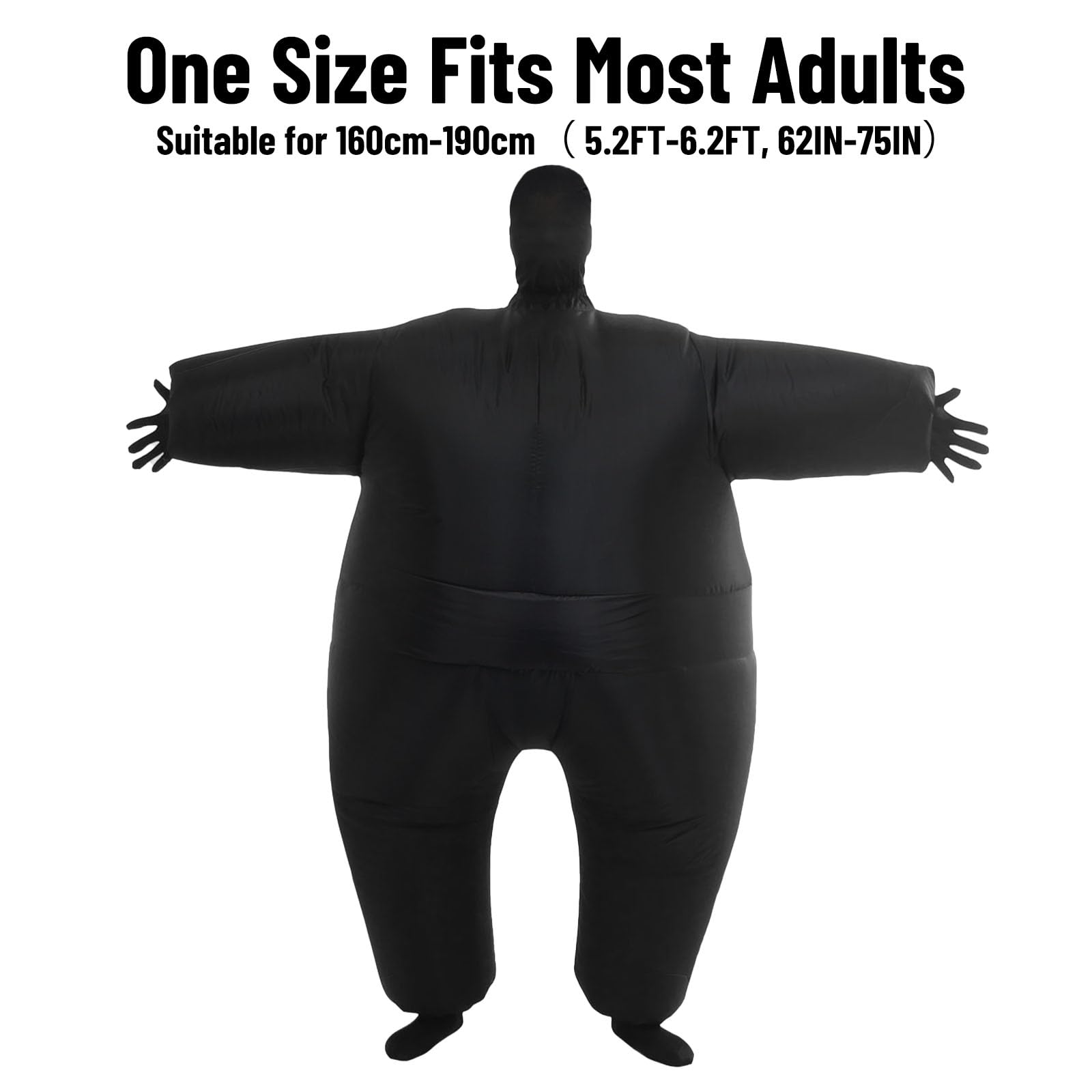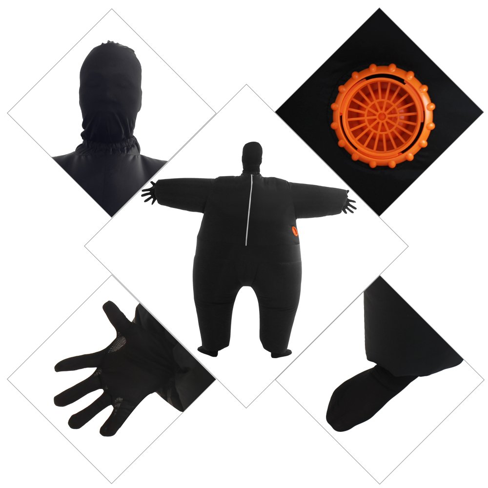 Quick Inflation – Built-in fan inflates the suit in seconds and keeps it full throughout your event.Included inflatable costume adult, cap, gloves and socks.
