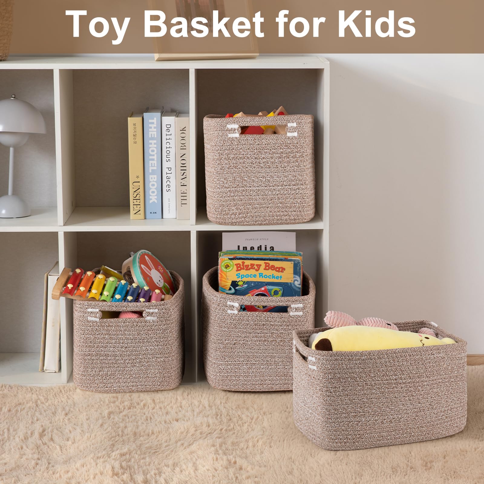 Our storage baskets are made of high-quality natural cotton rope, The rope material used in these baskets is soft to the touch and safe for kids, elders, and pets