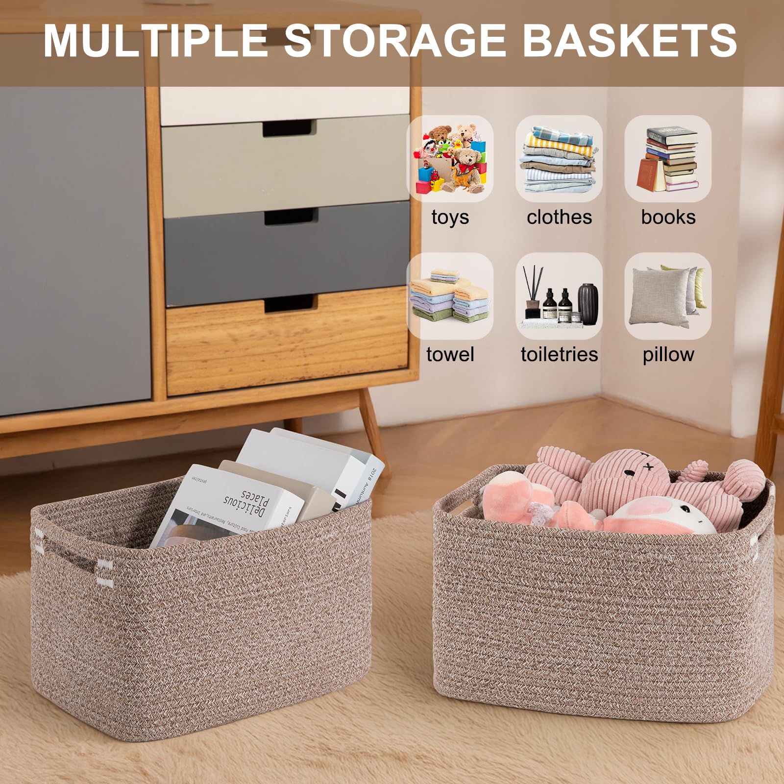 Baskets for Storage: The baskets measuring 12.7''Lx9''Wx7.8''H, convenient for storing more daily necessities.They can be perfect for store toys, books, towels, magazines, shoes, and more, helping you maximize your available space while keeping your belongings organized and easily accessible at all times