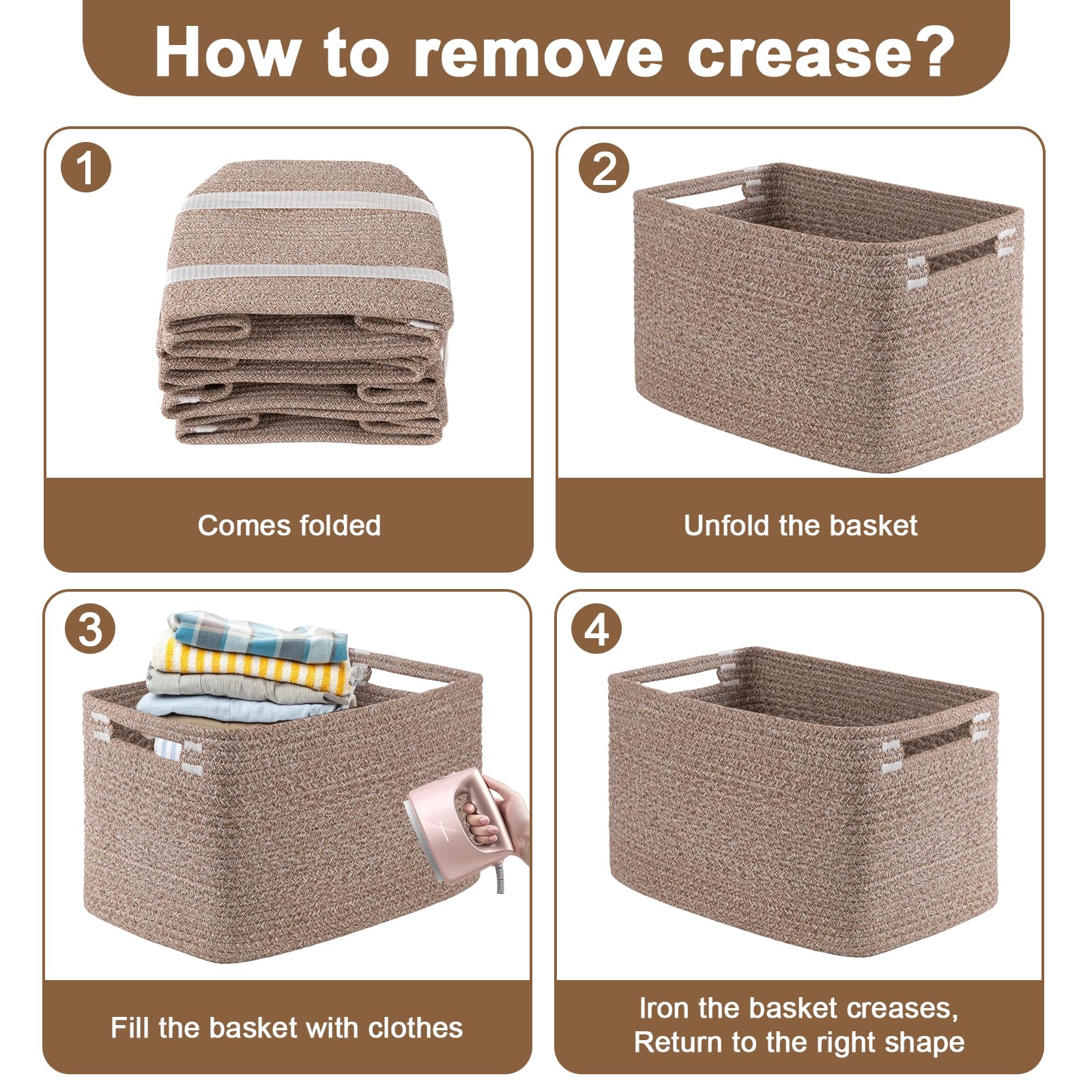NOTE: The woven baskets is folded for shipping, It will turn back to its elegant shape quickly by filling it with towels or blankets, and ironing is a great idea to regain the creases. Also, you can fold it into a flat shape for easy storage when not in use
