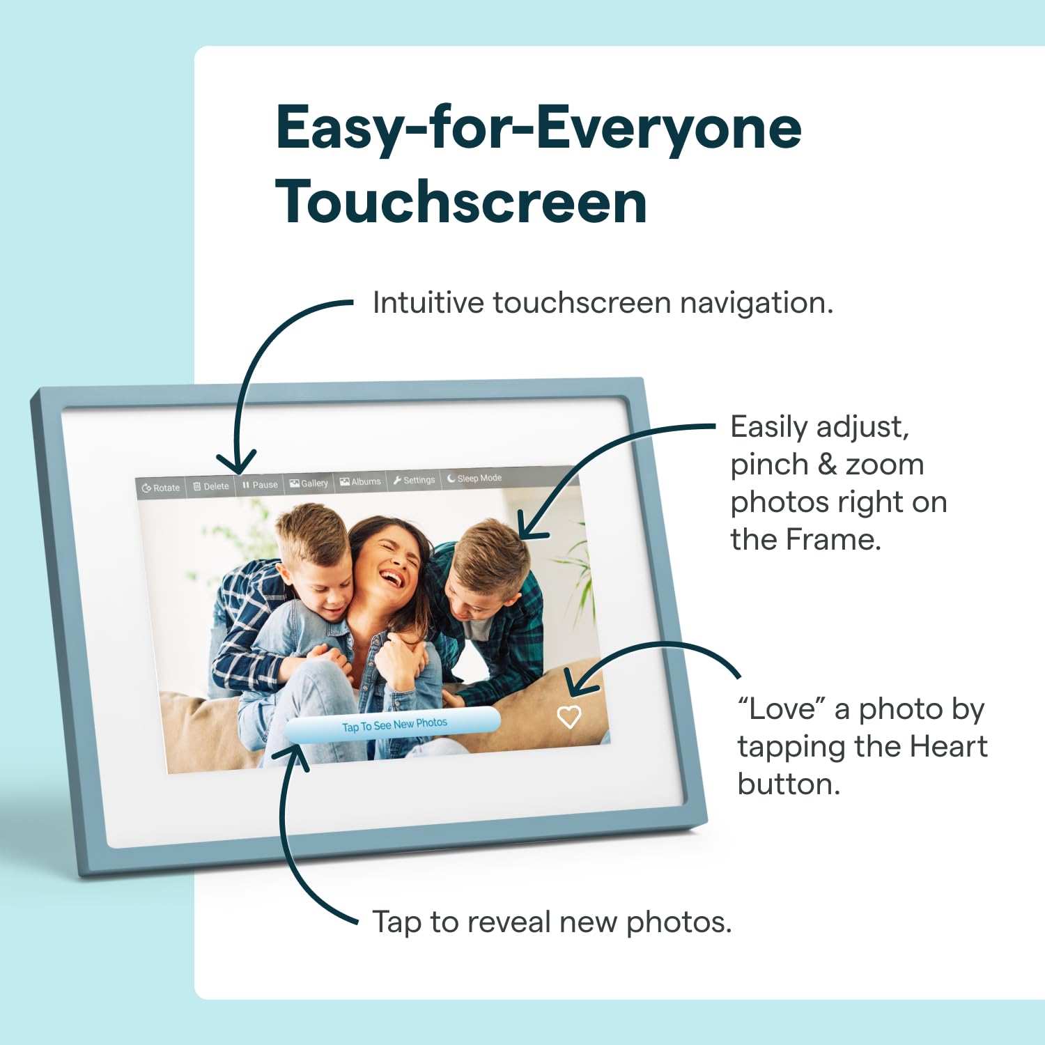 UPLOAD PHOTOS AND VIDEOS INSTANTLY: Easily share photos and videos directly from your phone to the digital frame, turning it into a vibrant photo display. It's the ideal photo gift for any occasion. Stay connected with loved ones by sending special memories, no matter the distance.