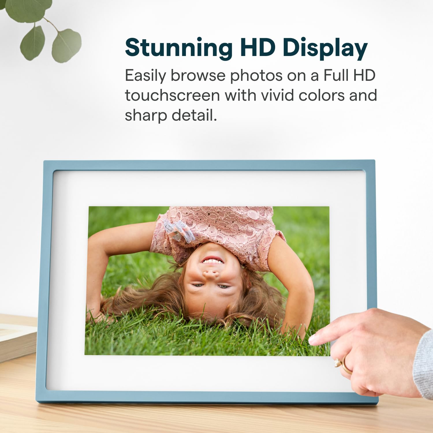 FULL HD SCREEN WITH AUTO-BRIGHTNESS & ANTI-GLARE: Enjoy a stunning 10-inch Full HD (1920x1200) touch screen photo frame with auto-brightness that adapts to various lighting conditions, while the anti-glare coating ensures clear, sharp visuals in any room, day or night.