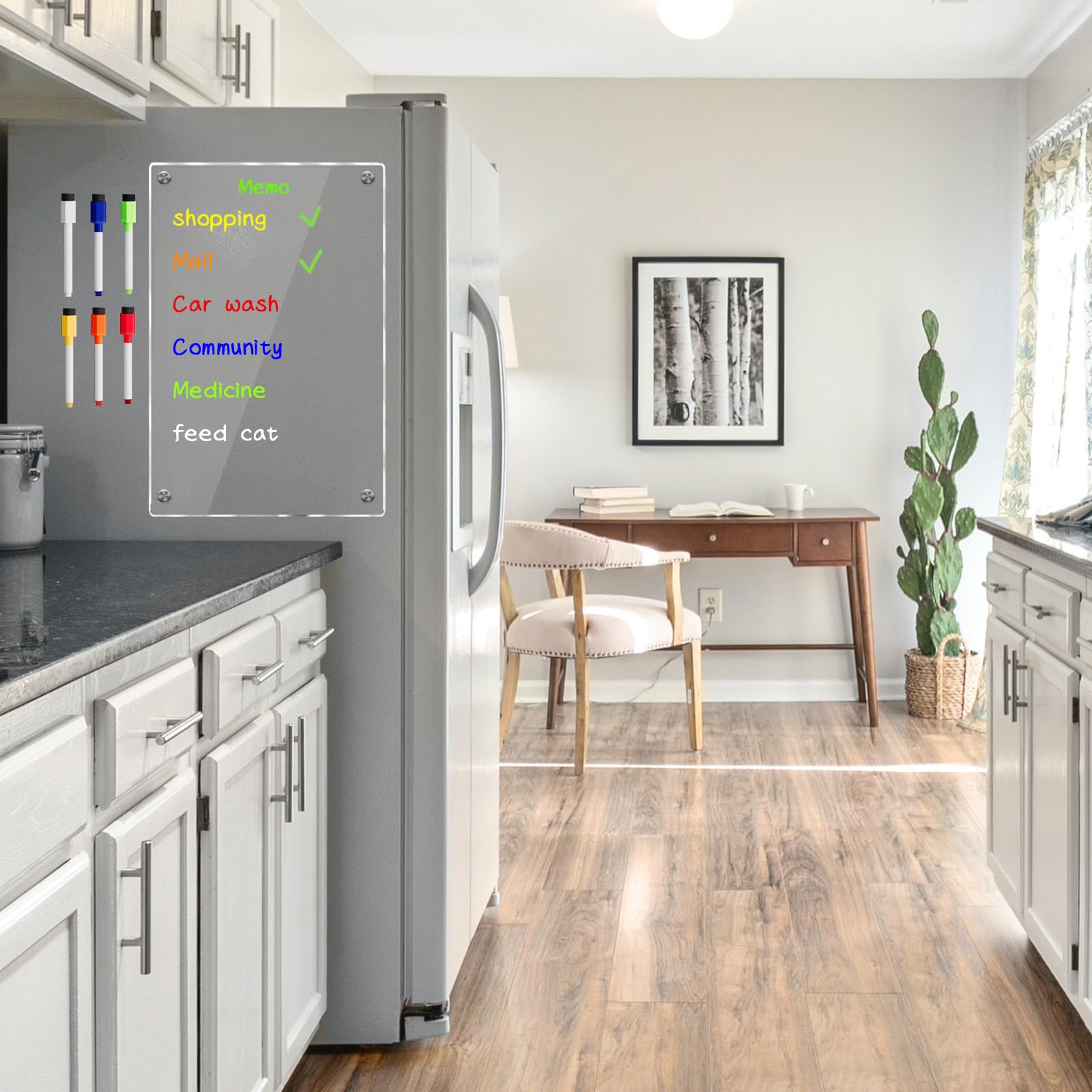 [ Highly Transmittance Acrylic ] The acrylic magnetic dry erase board for fridge is made of 3mm thick high-quality acrylic to make.The acrylic board provides a clean and smooth writing surface which is durable,can write more than 10,000 times.The edges are also finely polished,and the magnet increases the friction with the refrigerator by pasting the non-slip pad,at the same time protect the refrigerator from scratches.