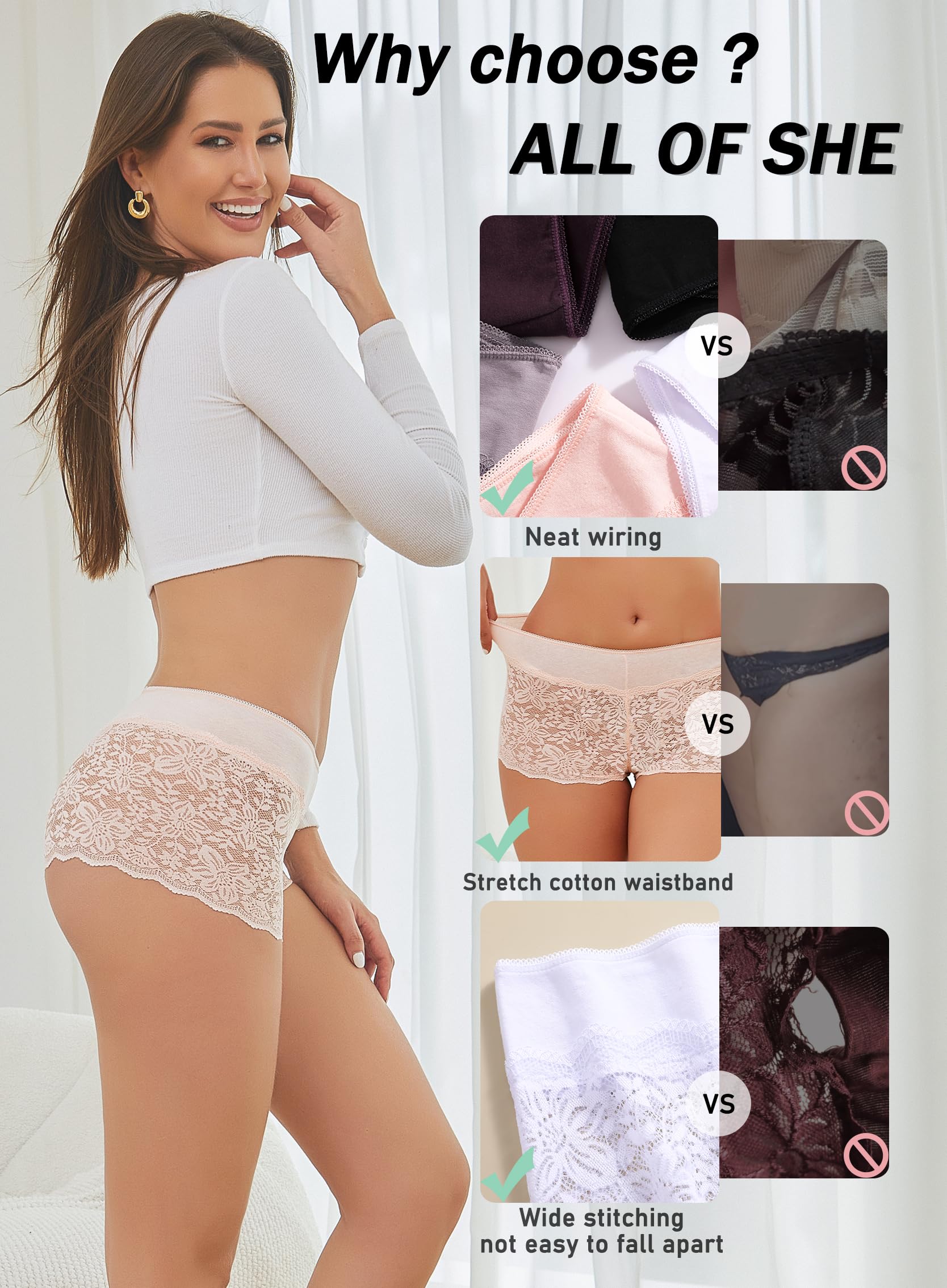 Ideal Gifts for Women & Holiday Celebrations: Packaged as a stylish 5 pack underwear, this set makes the perfect gifts for women, wife, girlfriends, or moms. Whether you're shopping for Christmas gifts, Valentine’s Day, anniversaries, or Mother’s Day, these assorted lace shorts are a thoughtful and practical gifts. Surprise her with a holiday gift that blends daily utility with a romantic aesthetic—a must-have in every womens ropa interior mujer collection.
