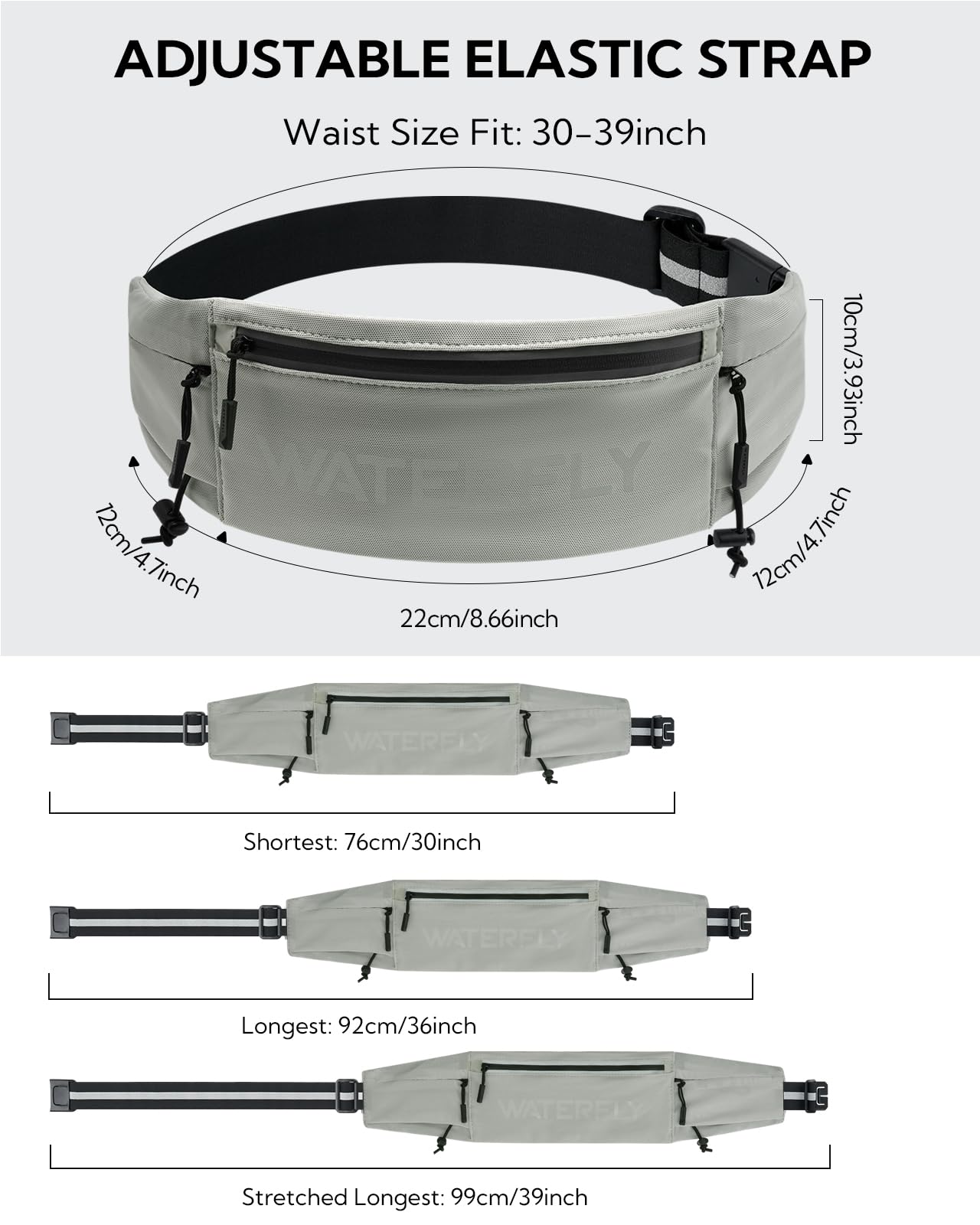 Quick Adjustable Waist Strap: The 0.2 lb running pack features an elastic band that allows for quick length adjustments and fits waists from 30" to 39". The highly elastic, dense, and thick band provides a snug fit that reduces bounce, ensuring comfort during long runs