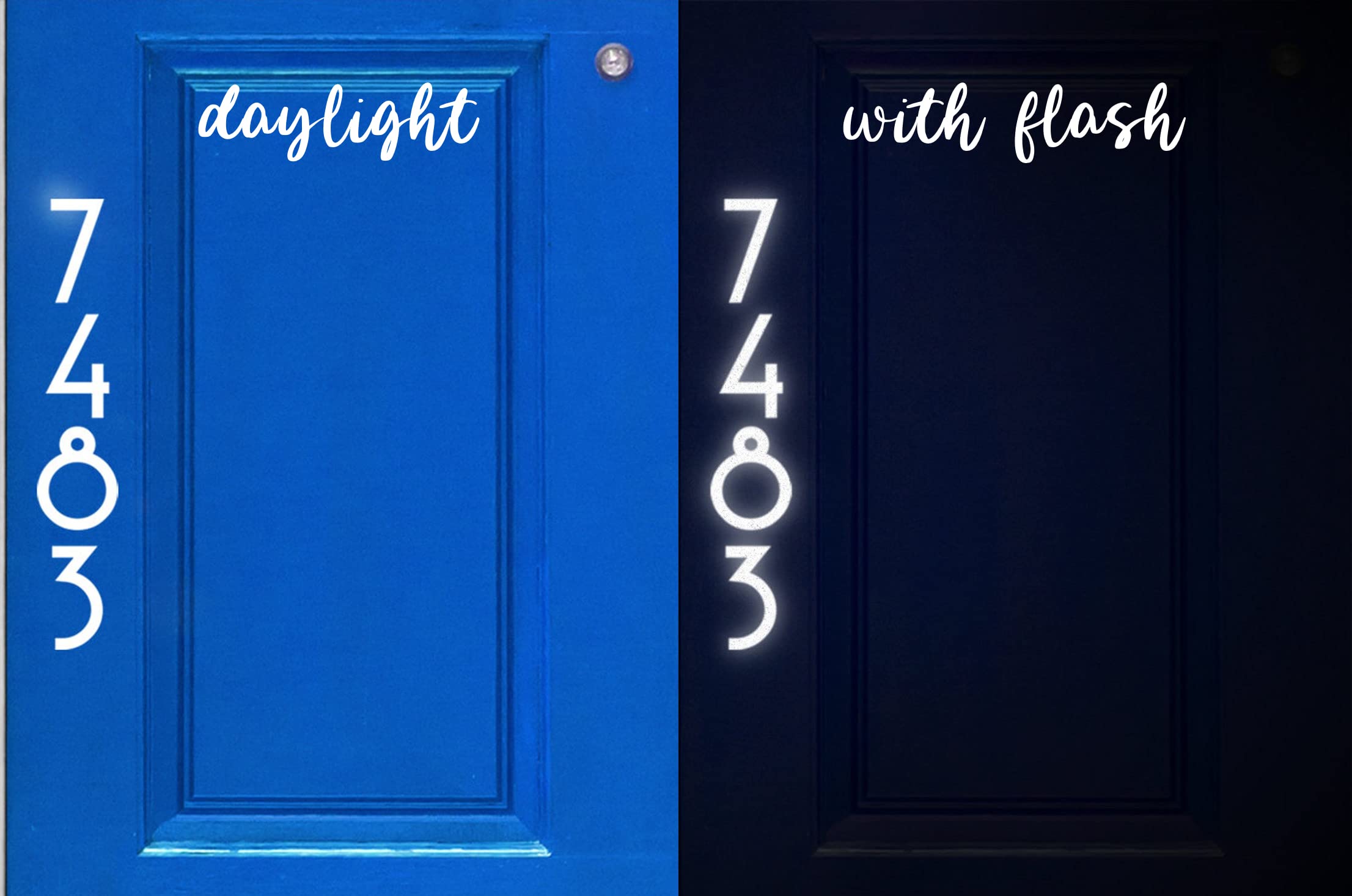 HIGH PERFORMANCE. To test the reflectivity, point a flashlight at the vinyl and you will see a glow as you shift the vinyl. As a reference, 3" tall reflective address numbers can be viewed from 100 feet away. You can also take a flash photograph or hold the vinyl in front of your car headlights. This pressure-sensitive vinyl (no heat required) is ideal for reflective vinyl mailbox, lettering, address numbers, fences, helmets, motorcycles, car decals, signs, signage, striping, cups, bottles.