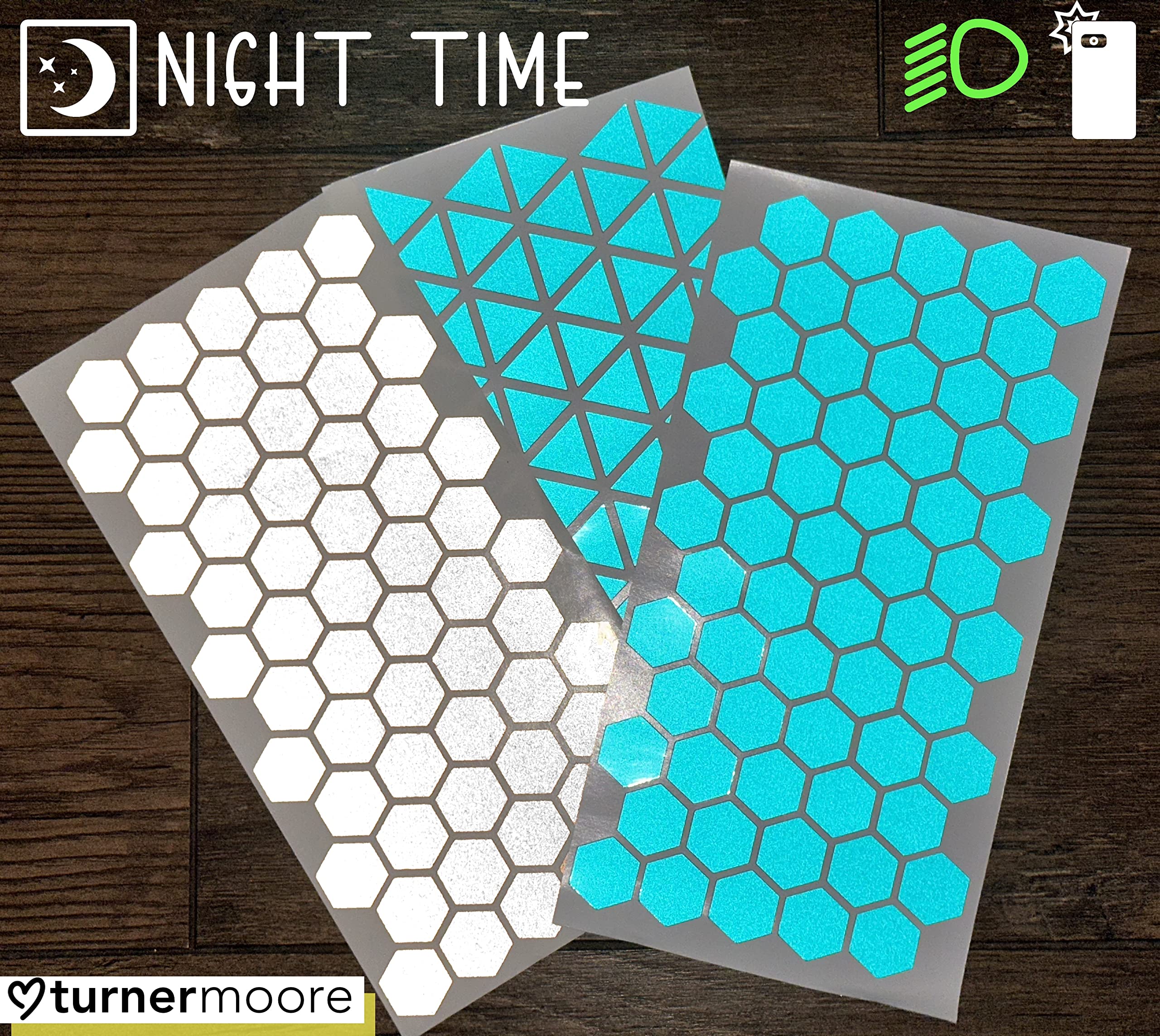 White Reflective Vinyl Adhesive by Turner Moore™ is a closed lens material that renders high retroreflectivity at night. It is an engineering grade reflective adhesive that can be used indoors but is waterproof and weather resistant making it an ideal craft vinyl choice for outdoor applications as well. This bundle includes 3 sheets of premium black reflective vinyl. Turner Moore's reflective vinyl for Cricut make excellent stickers for helmets, safety gear, vehicles, bicycle helmet, bike, hard hat, or motorcycle helmet. Apply these reflective stickers to your stroller, scooter, wagon, or wheelchair for a unique look and extra visibility. Create decals for signs, cars, mailboxes, address numbers, helmets, bicycles, skateboards, craft projects, outdoor decals. Create decorations for Halloween and make your kids more visible by applying to their costume or shoes. Easy peel and stick application. Durable weatherproof adhesive will last up to 7 years. Premium processing properties and comparable Oracal reflective 5400 vinyl. Finish: Reflective, Glossy Adhesive: Permanent, Solvent Based Durability: 5-7 years outdoor, 10+ indoor Shelf Life: 1 year (at 70F/50% relative humidity) Waterproof (hand wash recommended) Applications: Medium to long term indoor and outdoor. Adheres best to smooth surfaces including plastic, metal, and glass. Ensure the application surface is clean and dry. Use in car decals, trucks, hard hats, signs, striping, mugs, decor, car windows and more. Made in the USA Tips: Since our premium vinyl is sturdier than other vinyls on the market, for Silhouette, use the Glitter/Flocked med weight-65 lb setting. For Cricut use the setting between iron on and light cardstock. A test cut is recommended.