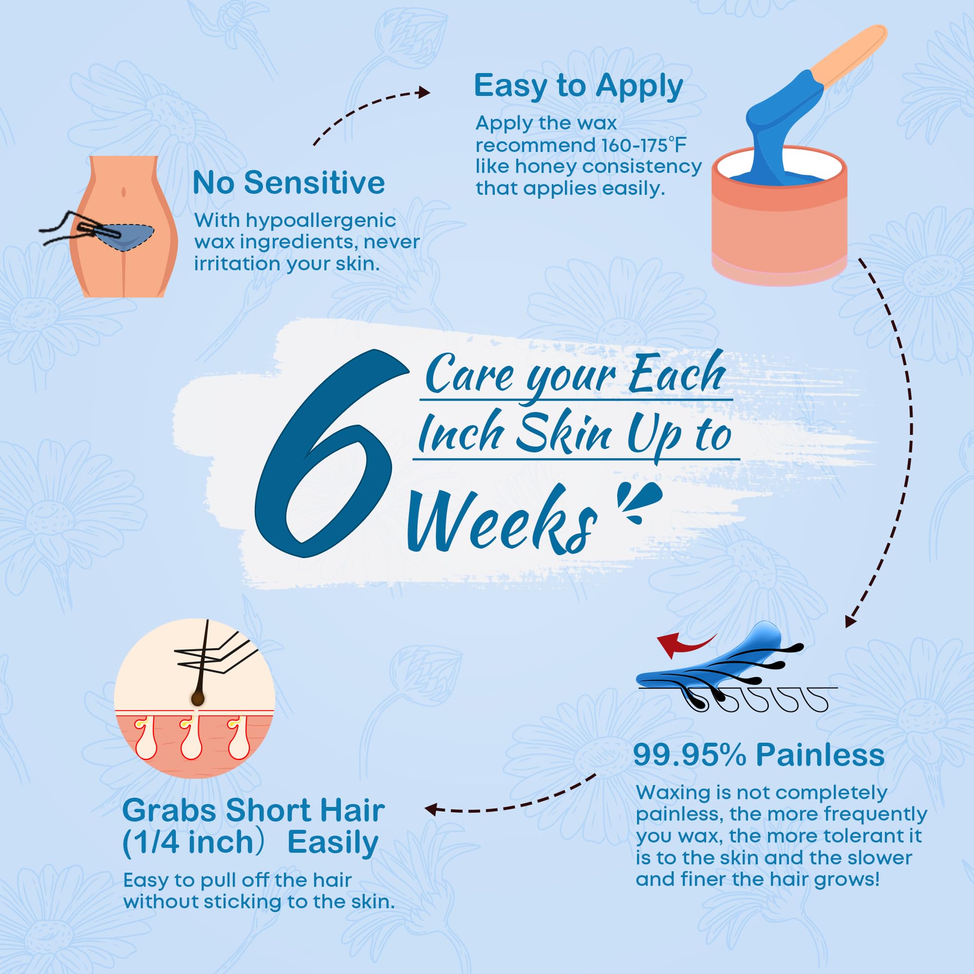 ELEVATE HOME SPA DAYS: Transform your home into a luxurious spa with our aromatic blue wax beads. Each session mimics a professional spa treatment, making every waxing experience a pampering retreat with the relaxing scent of chamomile
