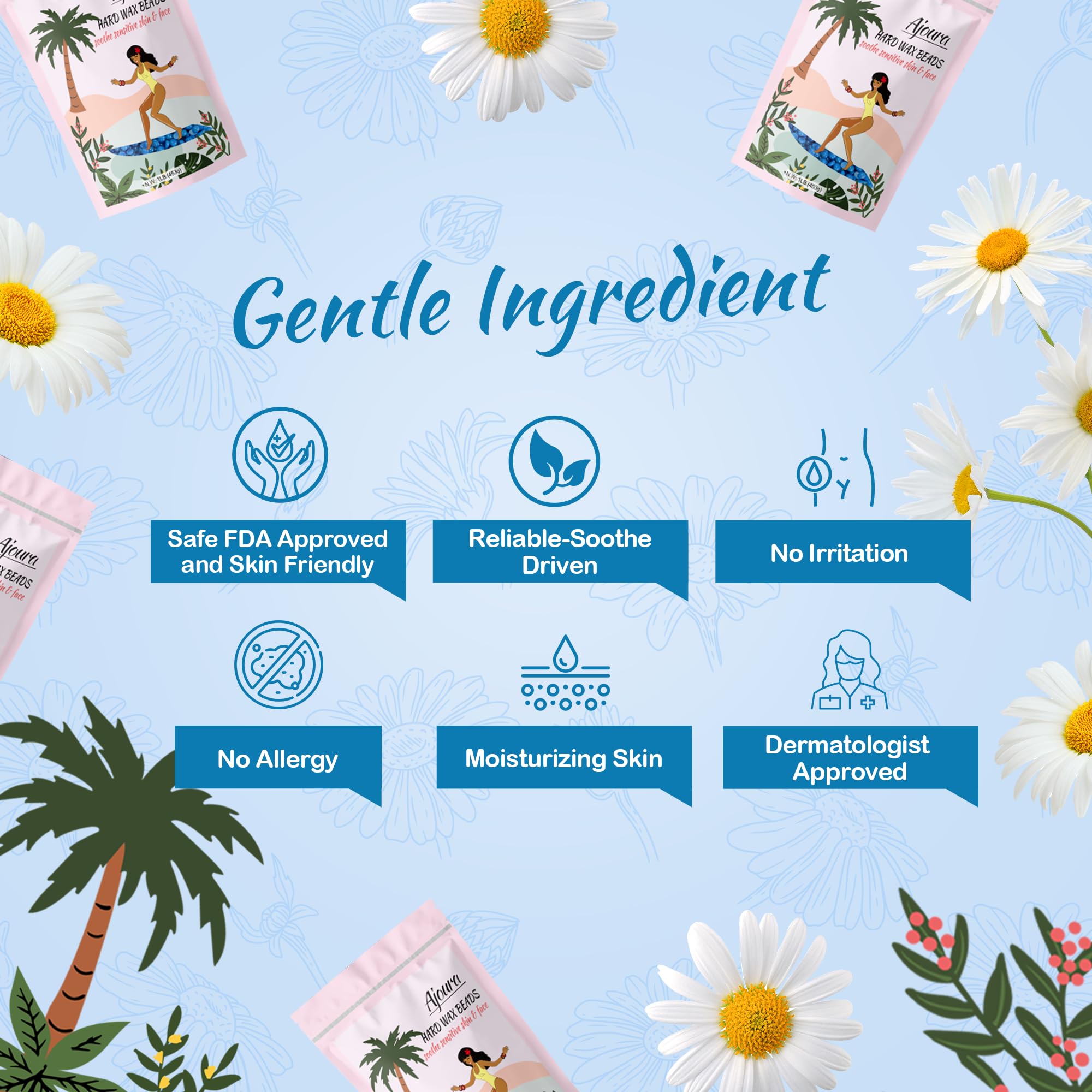 NATURAL AND HYPOALLERGENIC: Experience the purity of 100% natural chamomile extracts with our hypoallergenic wax. This wax beads for sensitive skin offers a soothing, safe, and enhanced waxing experience with its delightful calming aroma, making it perfect for sensitive skin types