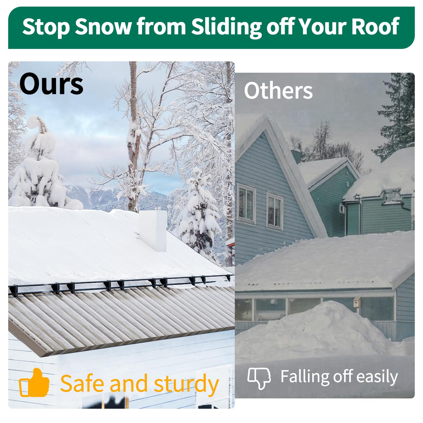 High-Quality Material- The metal roof snow guards are constructed from heavy duty galvalume steel and coated with a layer of aluminum-zinc alloy, ensuring durability and resistance to oxidation and corrosion. This robust material enhances the safety and structural integrity of your roof, offering a longer service life and protection against adverse weather conditions