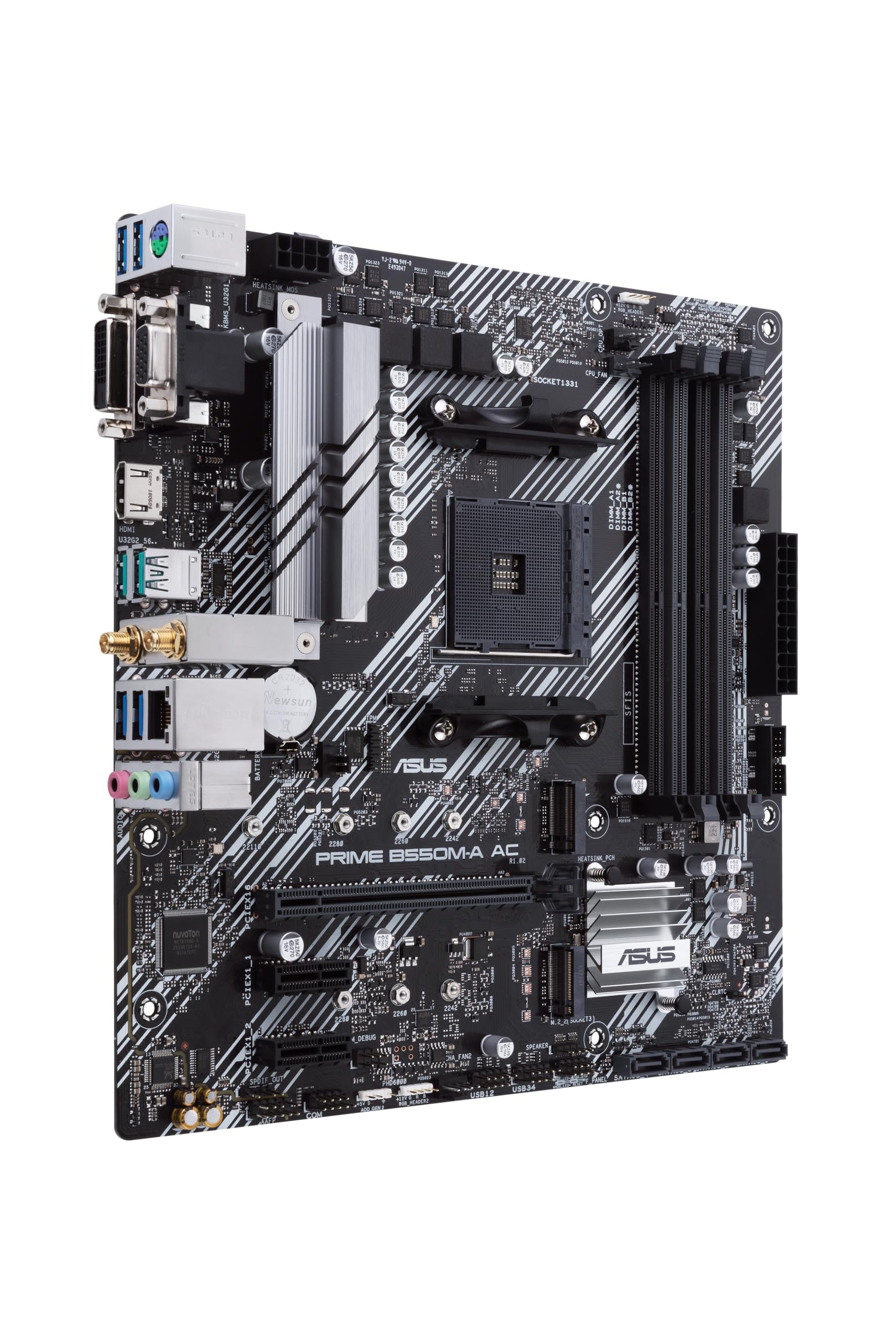 Powered by 3rd Gen AMD® Ryzen™ processors, the ASUS Prime B550M-A AC delivers next-generation speeds with PCIe 4.0, WiFi and 1Gb LAN. Boasting a robust power design, comprehensive cooling solutions and intelligent tuning options, the ASUS Prime B550M-A AC provides mainstream PC users and DIY PC builders with a perfect all-around foundation via intuitive software and firmware features.