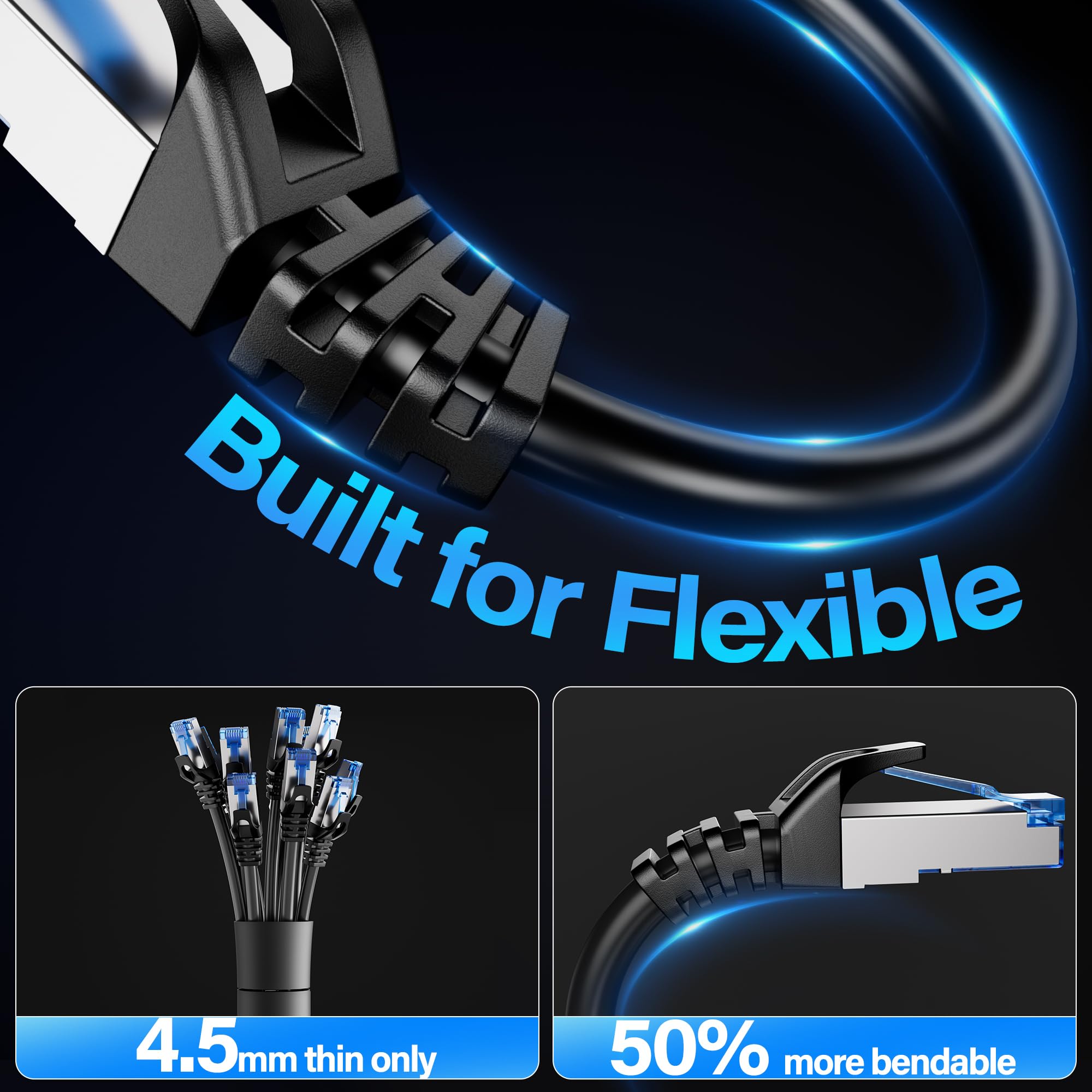 【10Gbps High-Speed】: Ethernet cable cat6a provide ultra-fast 10 Gbps speed with 550MHZ bandwidth. Cat 6e ethernet cable is perfect for 4K streaming, online gaming, and large downloads, and 10X faster speeds than cat5e cables, backward compatible with cat6, cat5e and cat5 standards.