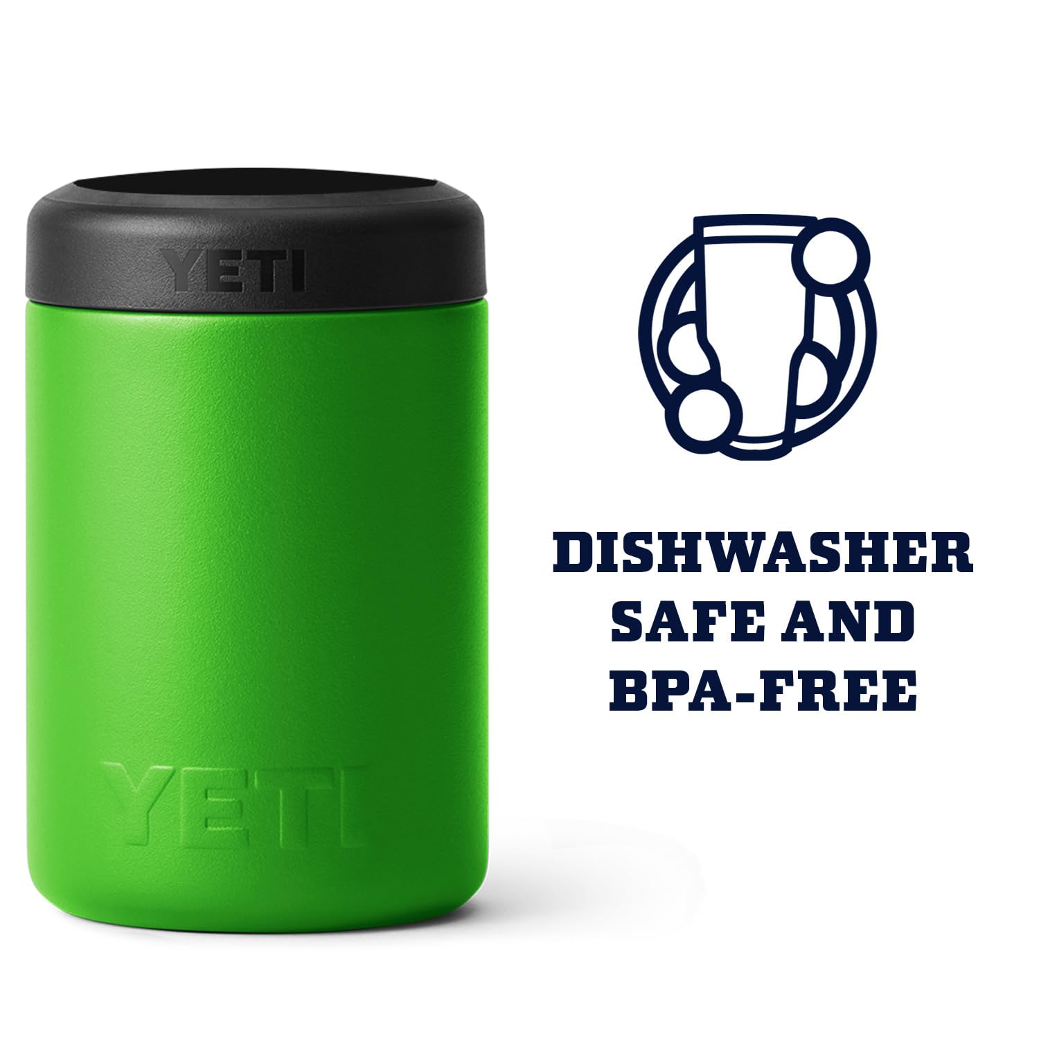 NOTE: This version does not include the Stash Can which was previously included. The YETI Standard Colster 2.0 is dishwasher safe and measures: 3 in x 4.25 in