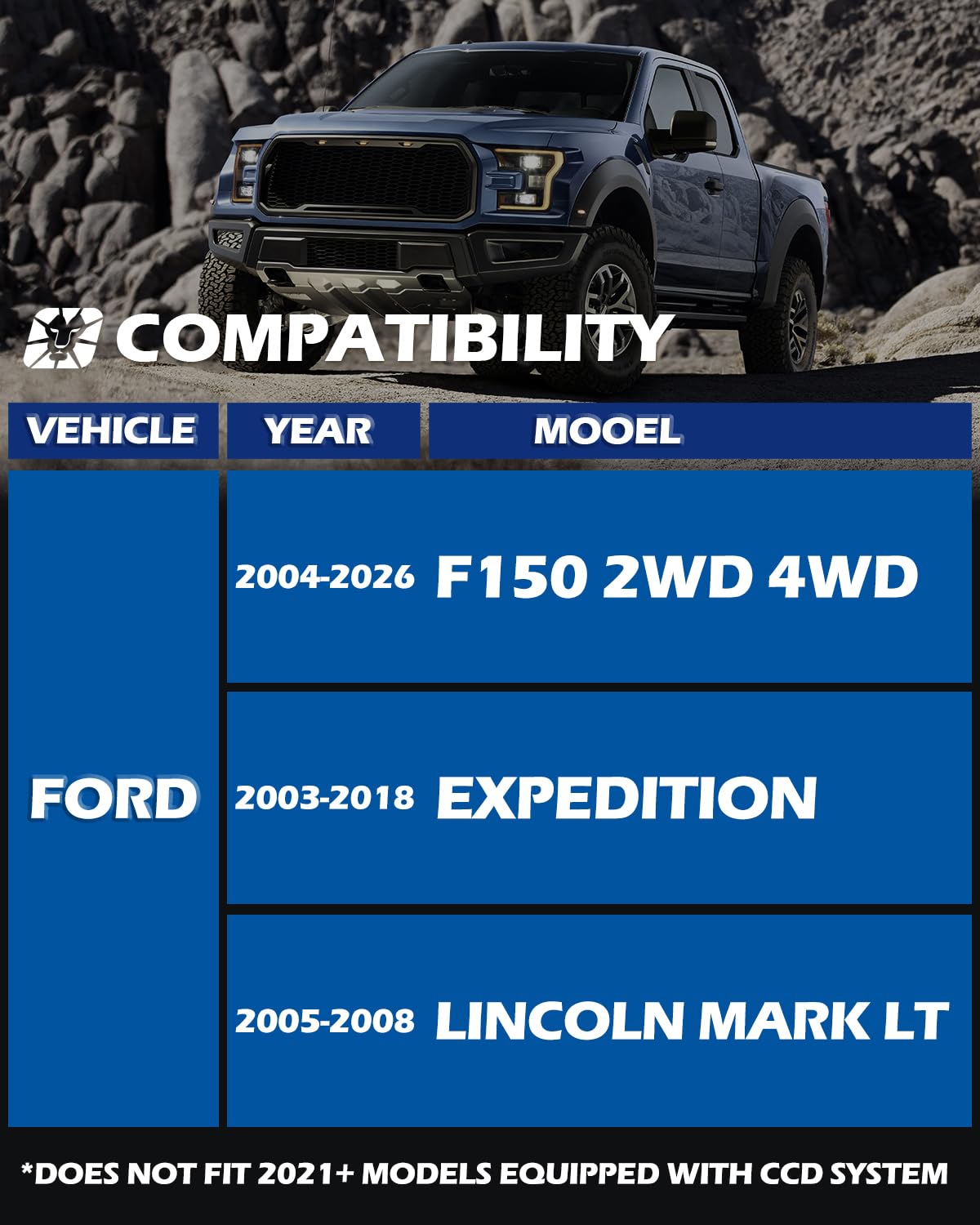 【Compatibility】2004 - 2025 F150 2WD/4WD; 2003-2018 Expedition; 2005 - 2008 Lincoln Mark LT(**Does NOT fit 2021+ models equipped with CCD system)